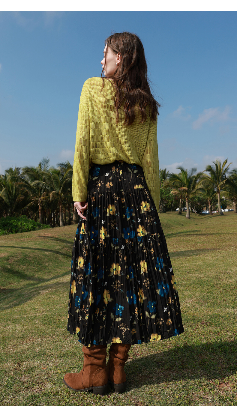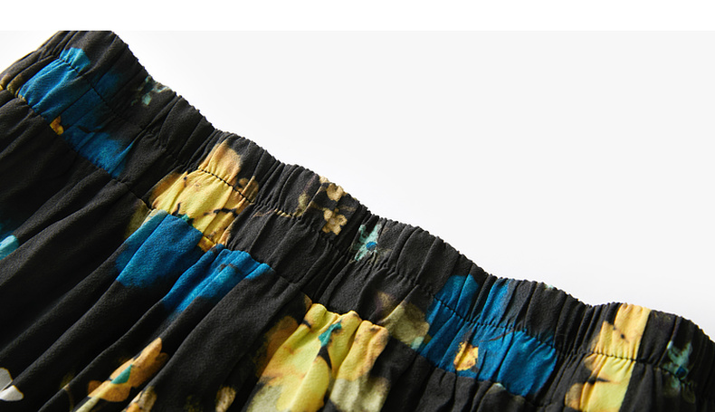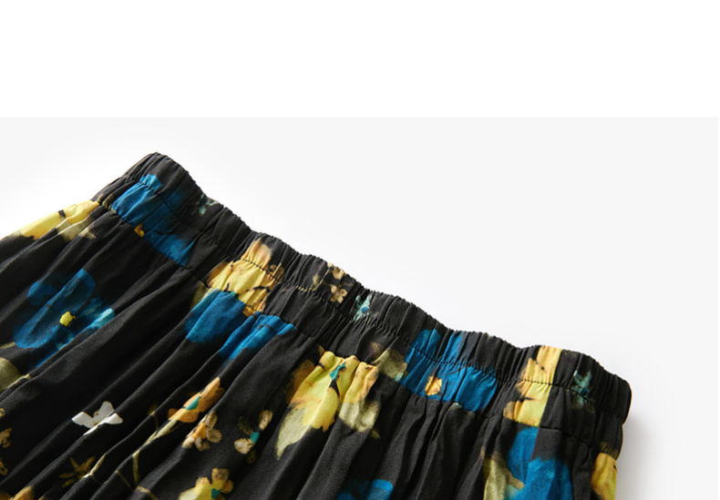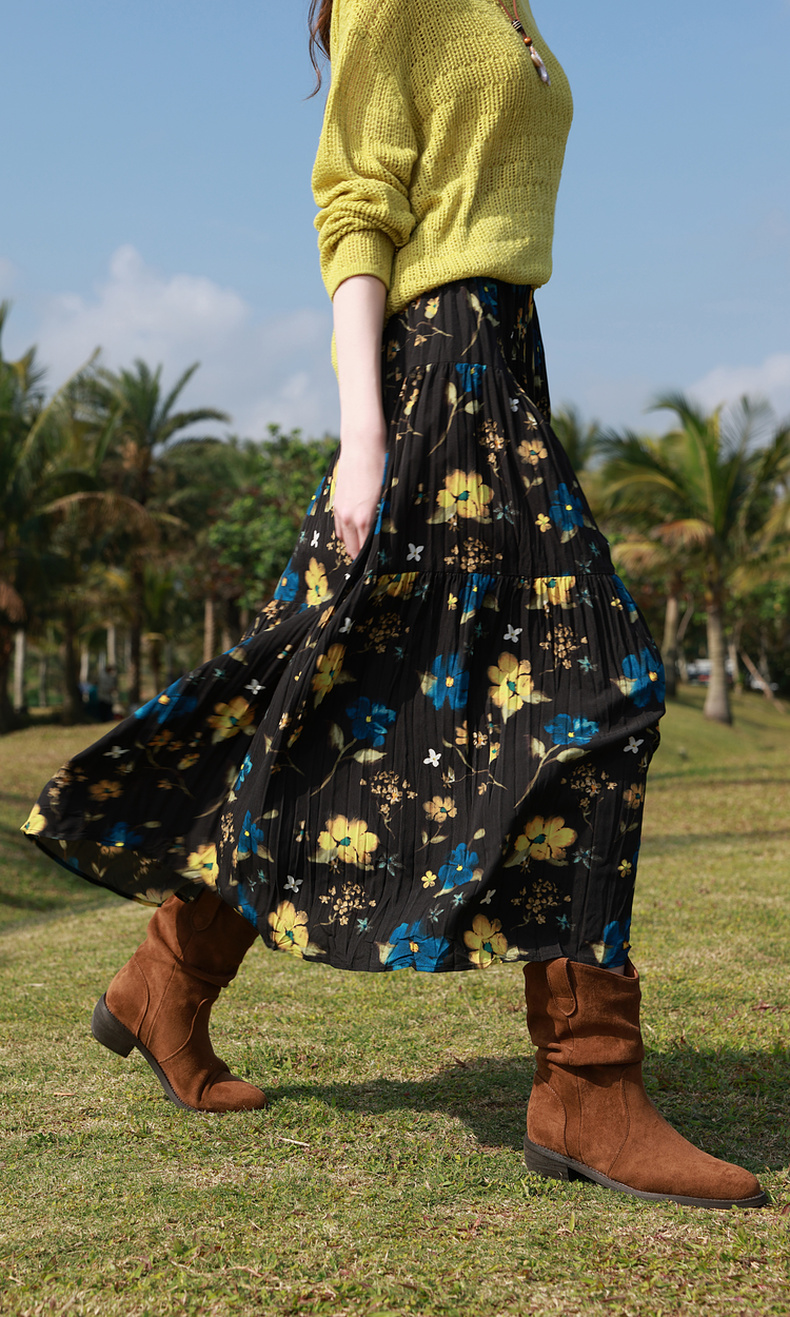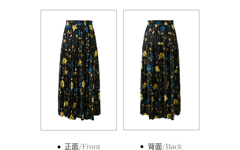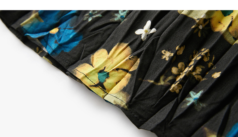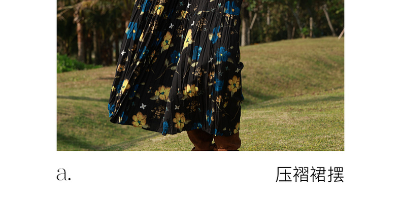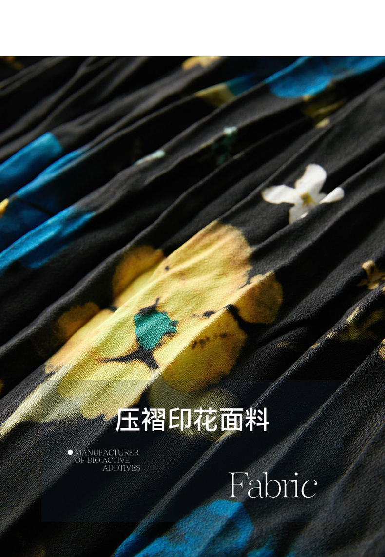三彩2026春季新款复古压褶碎花裙高腰半身裙长裙大摆A字裙垂感M