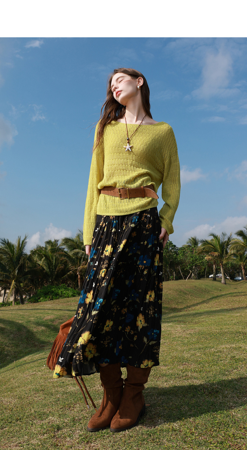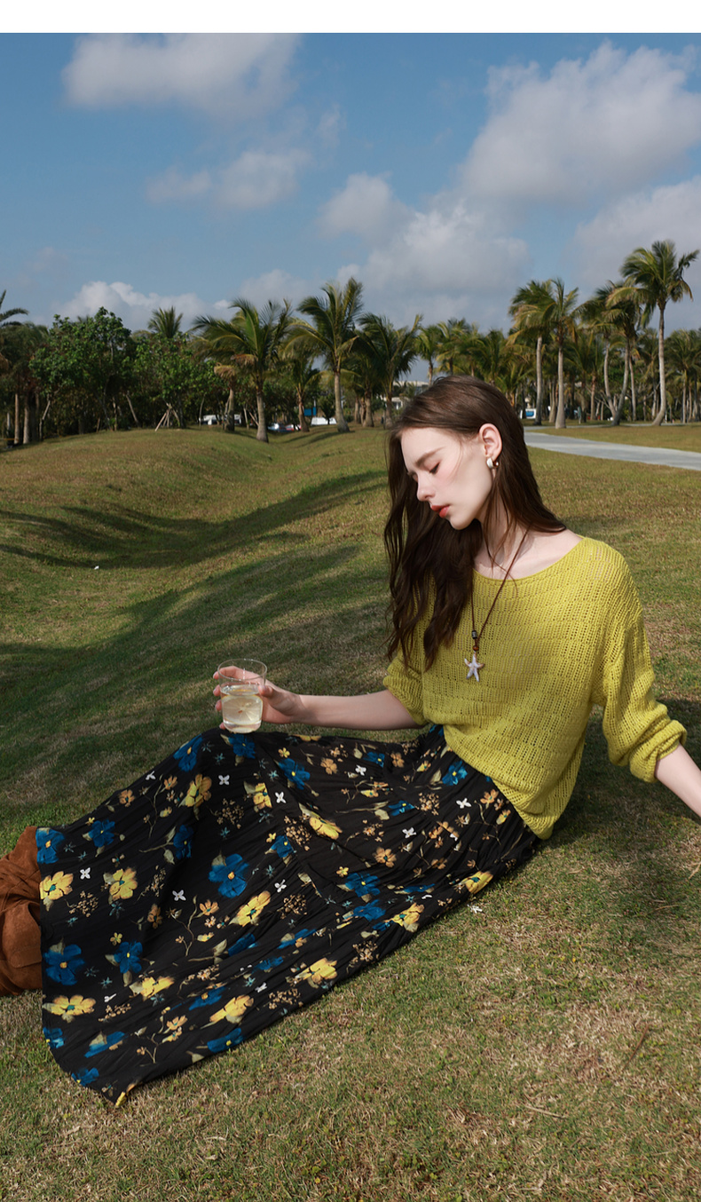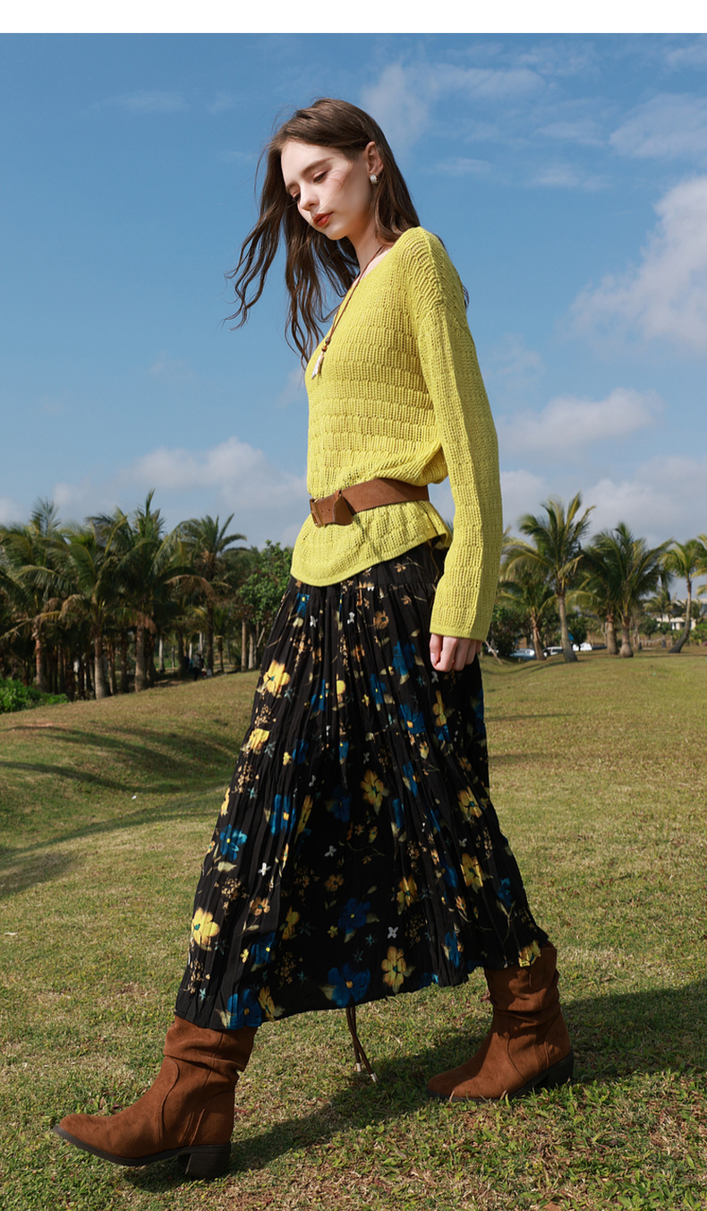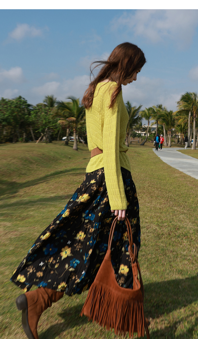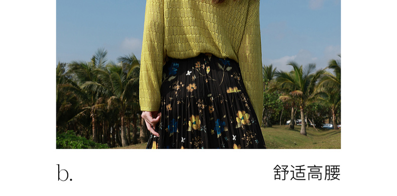 三彩2026春季新款复古压褶碎花裙高腰半身裙长裙大摆A字裙垂感M