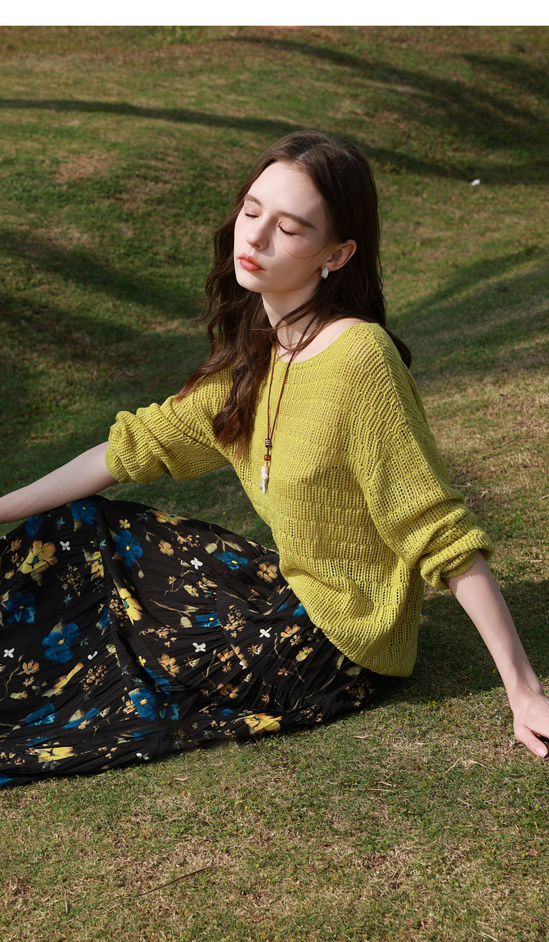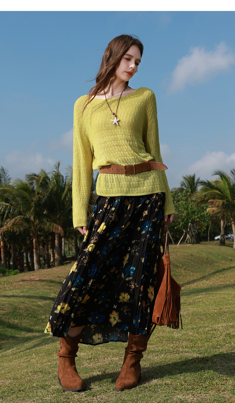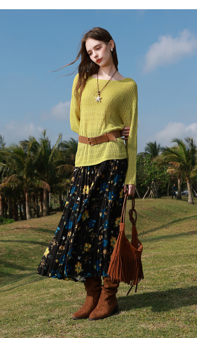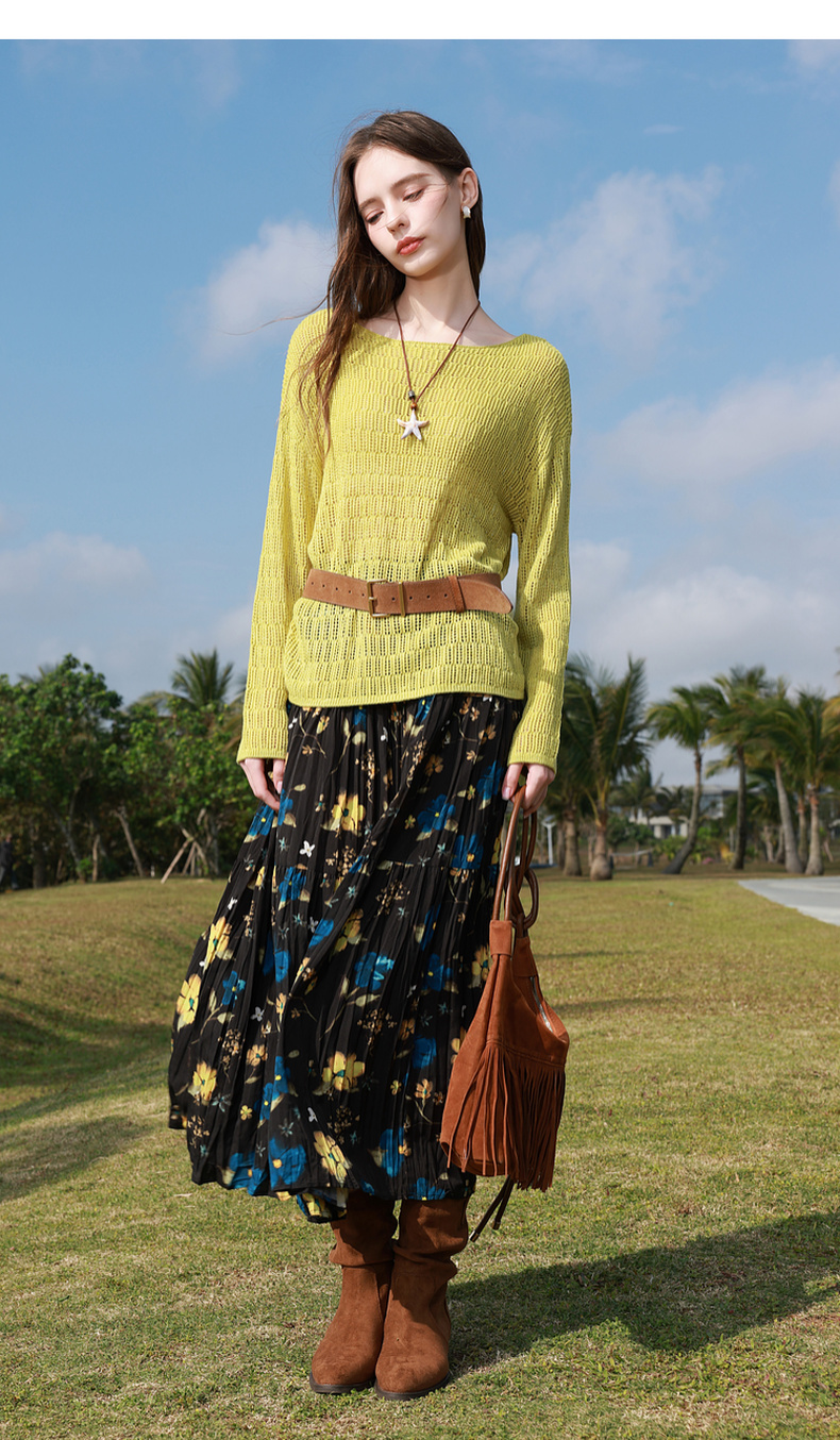 三彩2026春季新款复古压褶碎花裙高腰半身裙长裙大摆A字裙垂感M