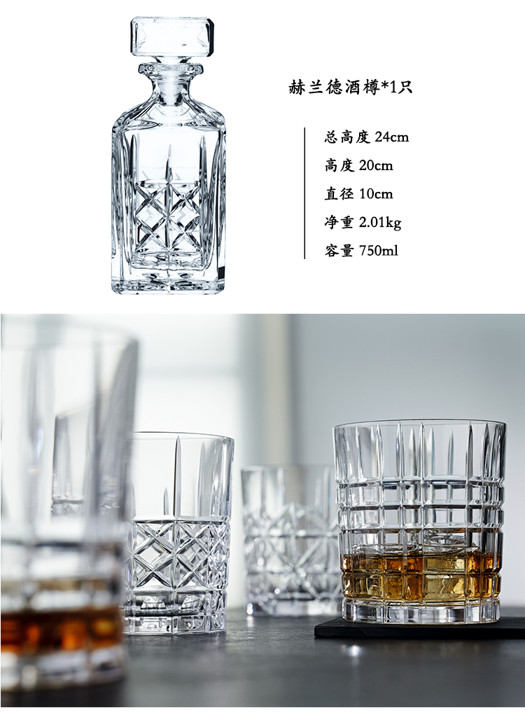 德国进口奈赫曼Nachtmann威士忌5件套 (醒酒器+不同花色威士忌酒杯x4)
