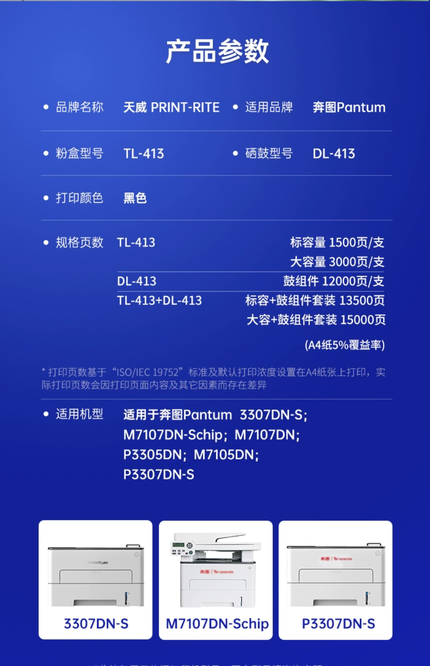天威 TL413硒鼓适用奔图m7105dn粉盒p3305dn碳粉盒DL-413鼓架P3307DN-S墨粉盒M7107DN-S打印机鼓组件