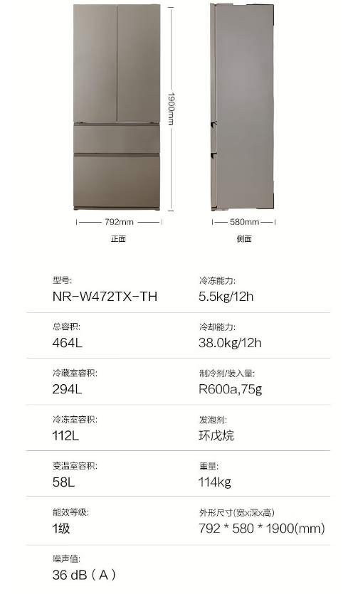 【限天津区域】松下/冰箱/NR-W472TX-TH