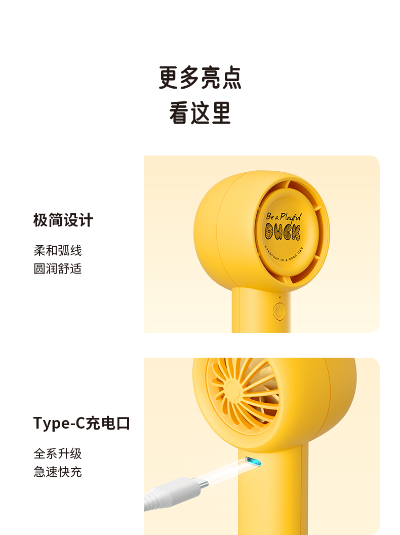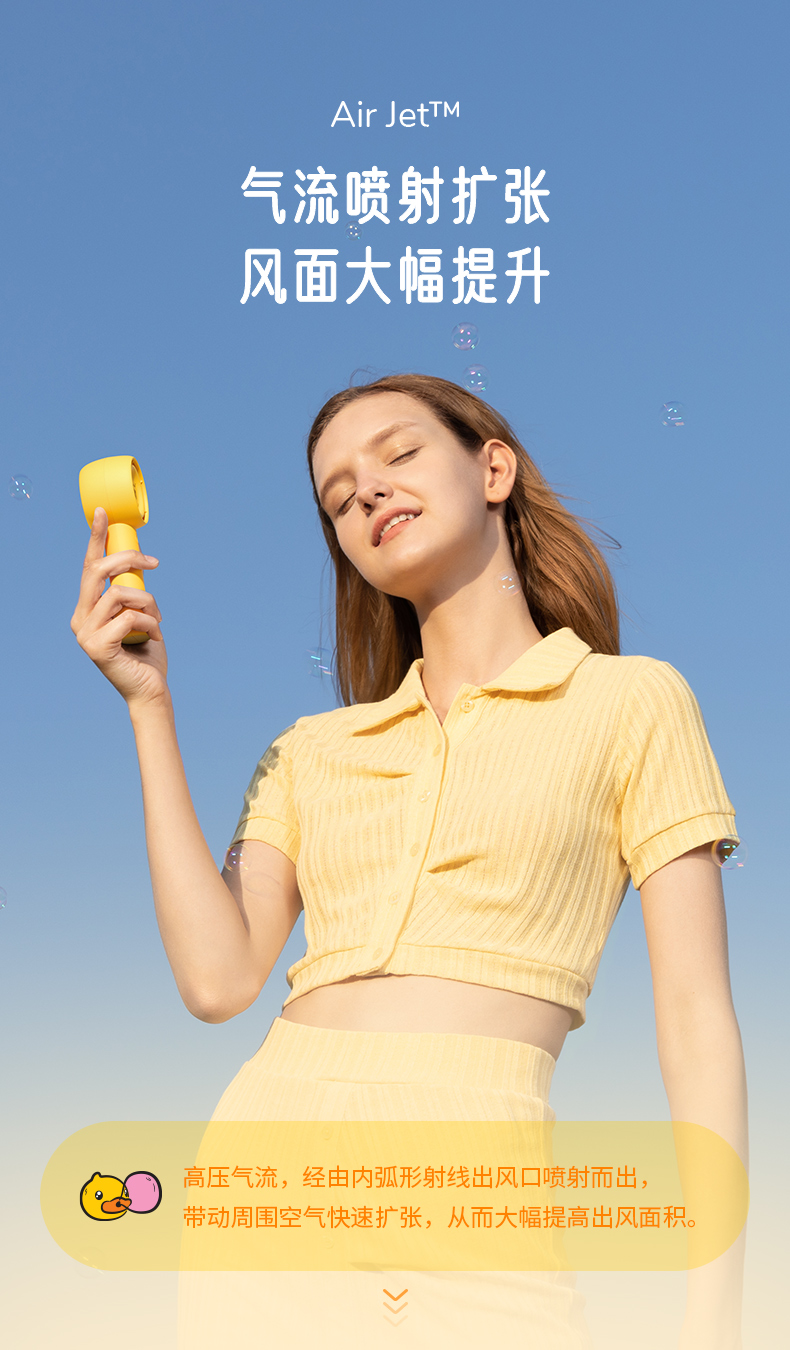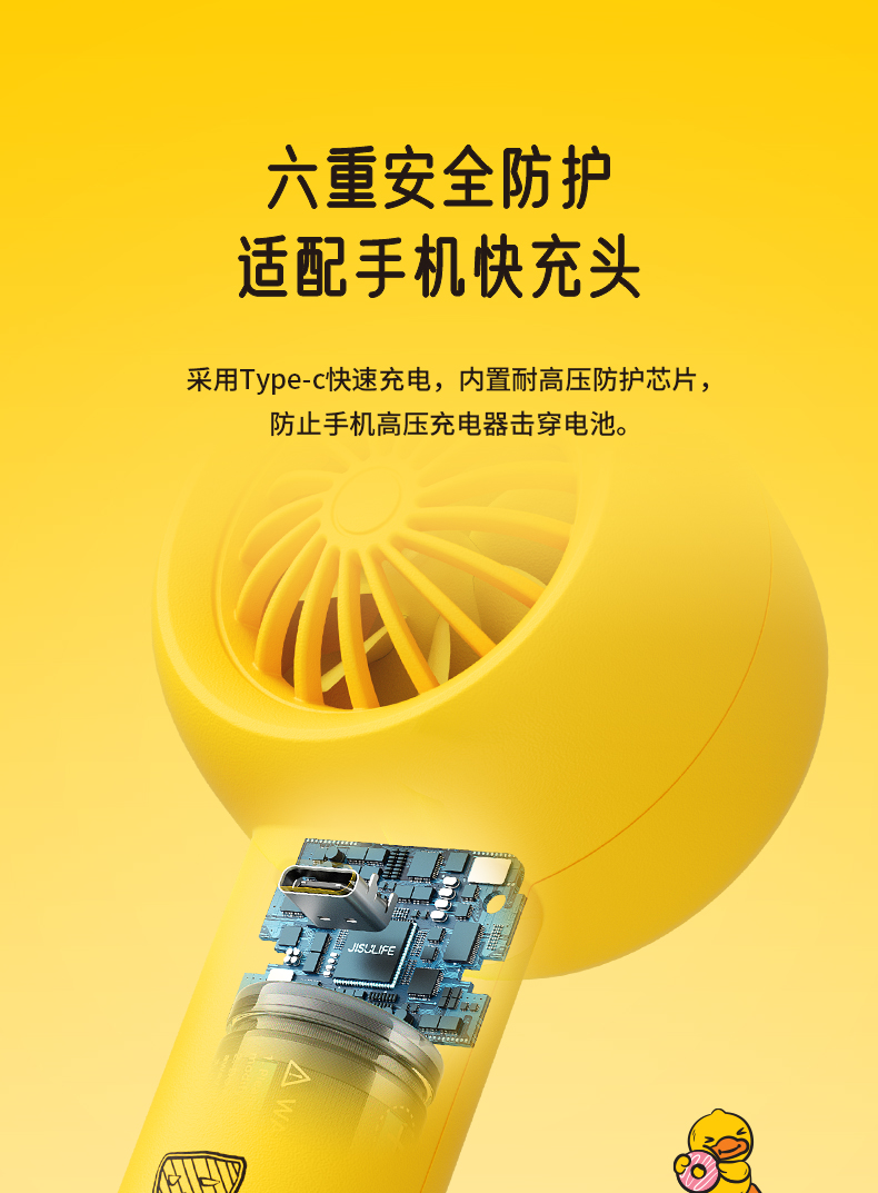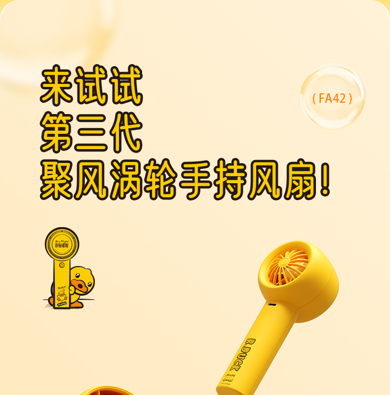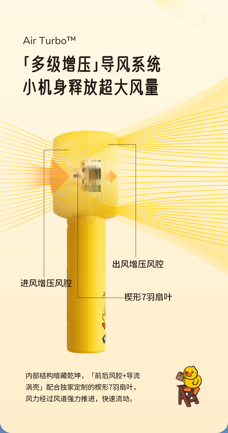 几素 【涡轮聚风】小风扇手持迷你小型随身便携式usb充电大风力办公室学生宿舍手拿儿童无叶轻音电风扇【小黄鸭B.Duck】联名款+2000mAh
