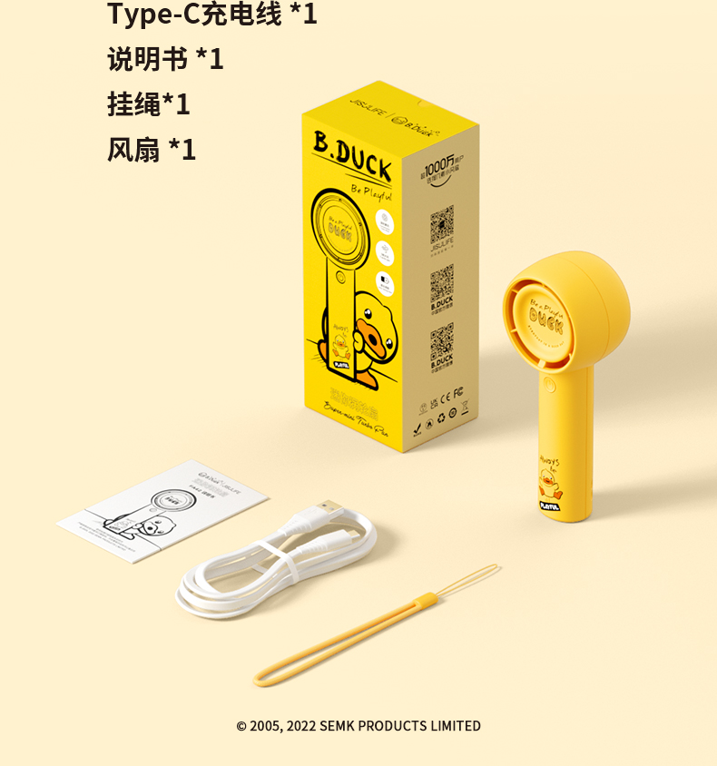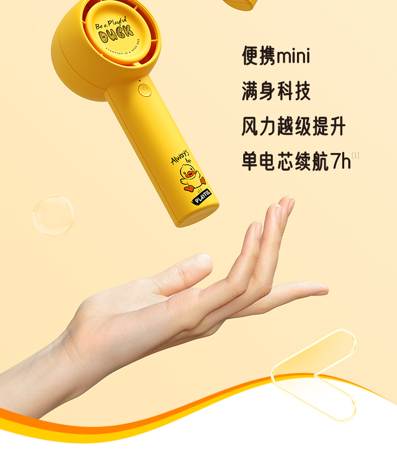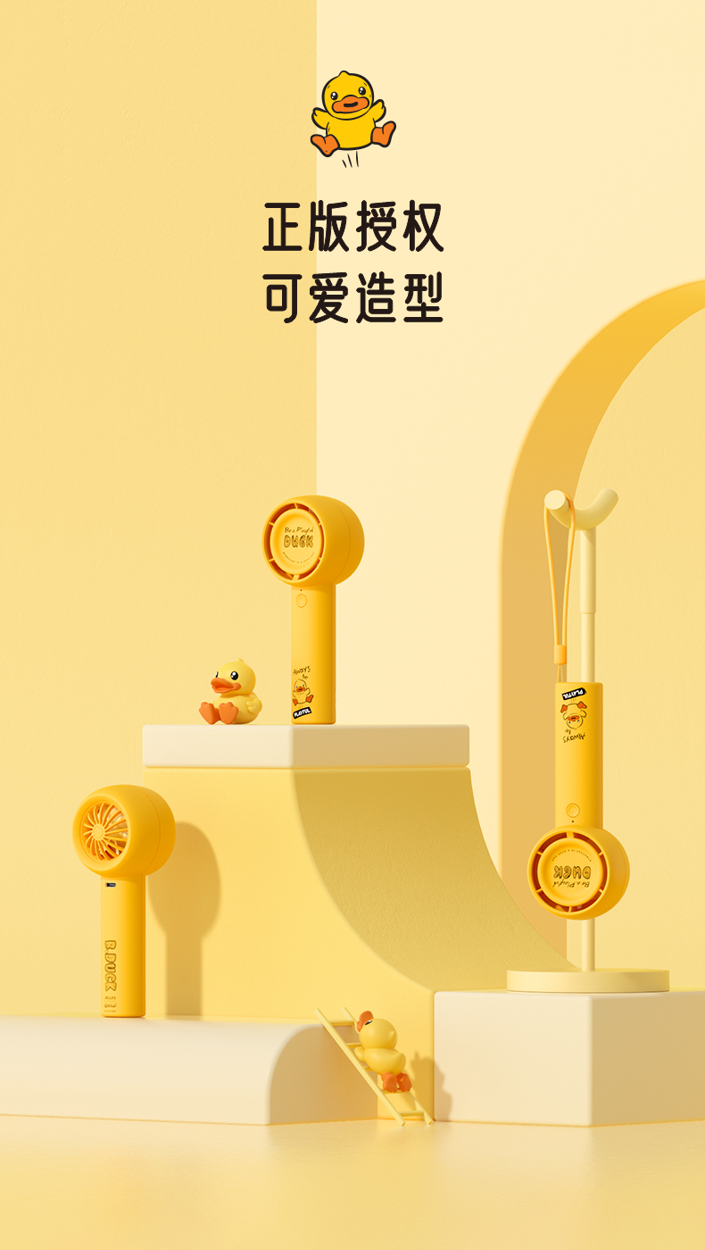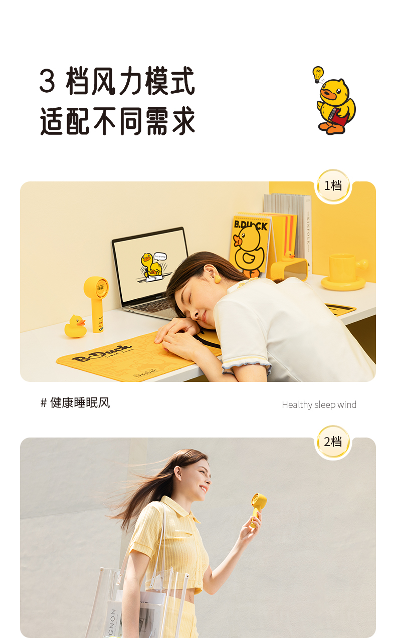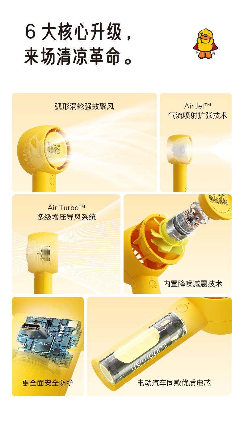 几素 【涡轮聚风】小风扇手持迷你小型随身便携式usb充电大风力办公室学生宿舍手拿儿童无叶轻音电风扇【小黄鸭B.Duck】联名款+2000mAh