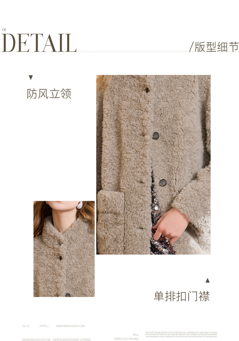 【100绵羊毛】三彩2025冬季新款立领皮草毛毛外套中长简约M
