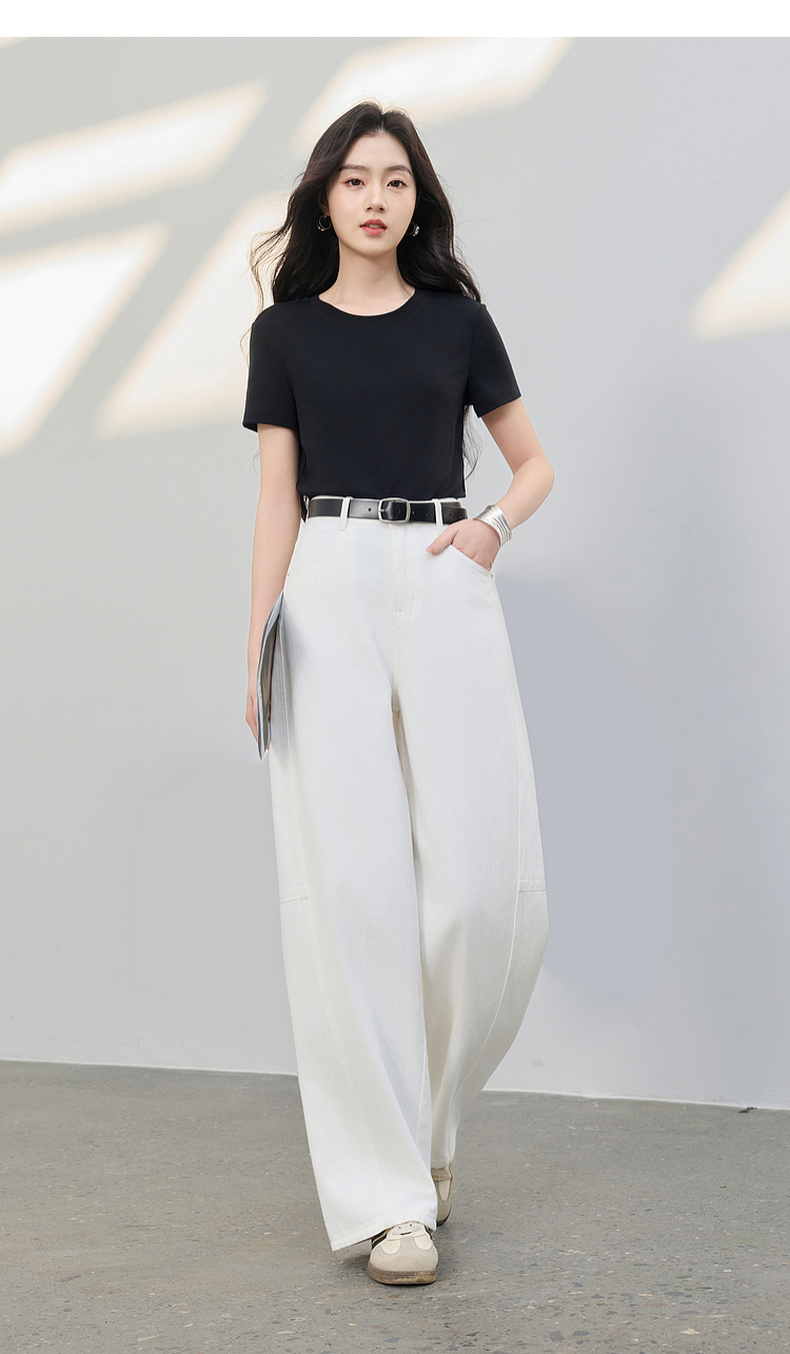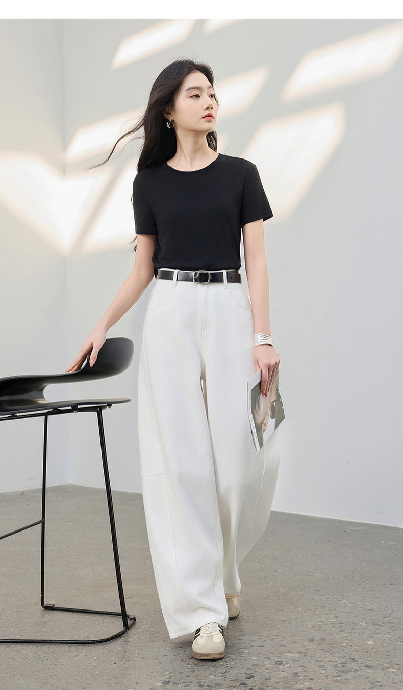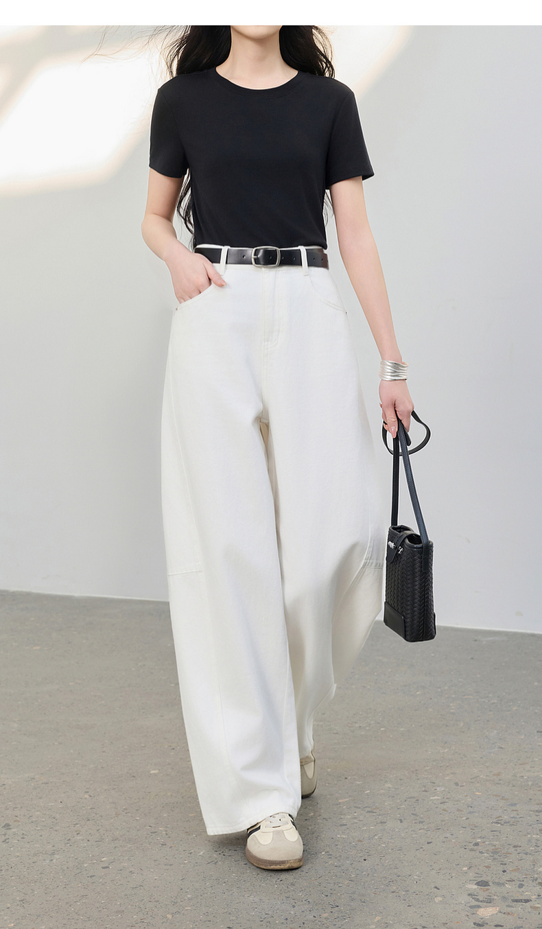 【100棉】三彩2026春季新款镰刀裤气球裤牛仔裤休闲宽松长裤简约M