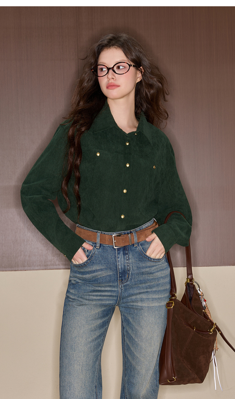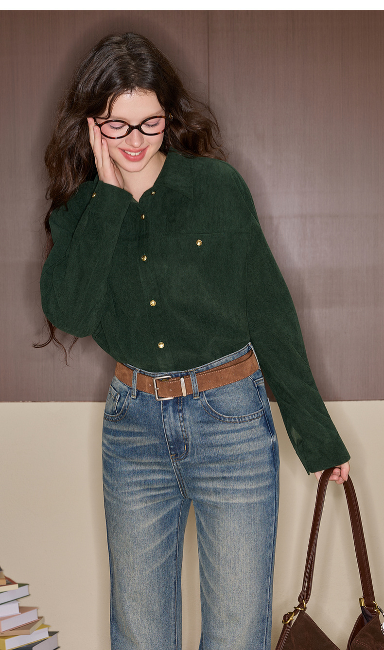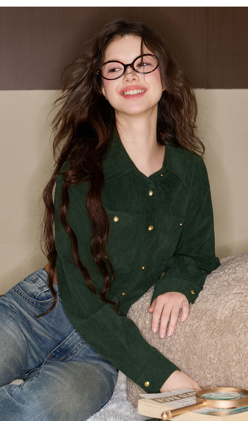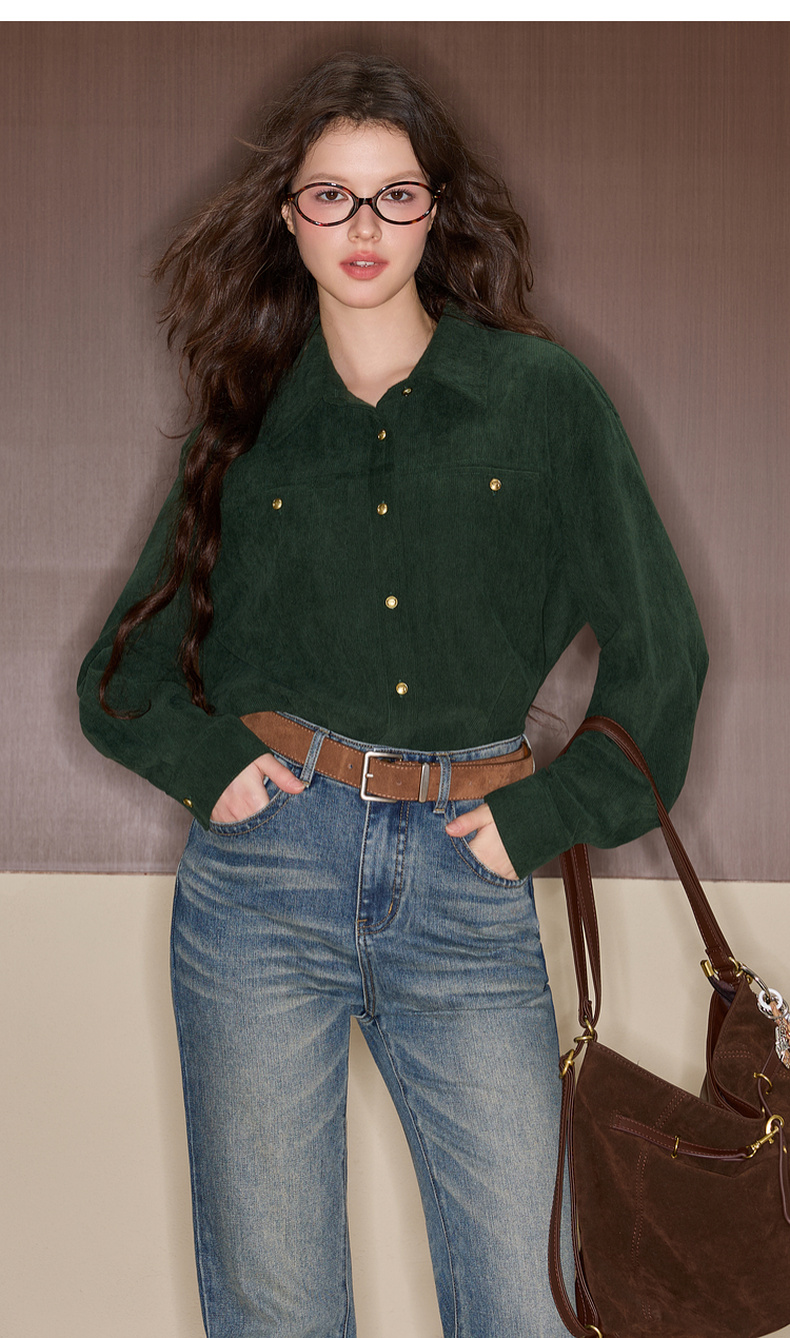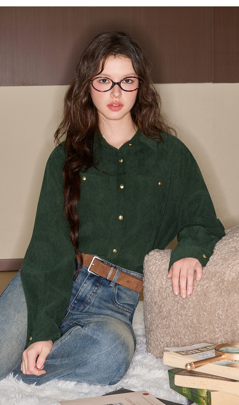 三彩独醒2025冬季新款灯芯绒衬衫翻领宽松衬衣休闲复古F