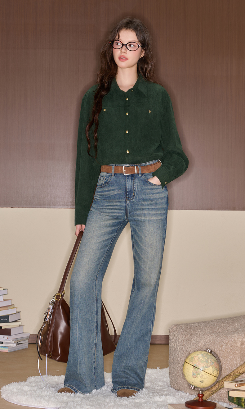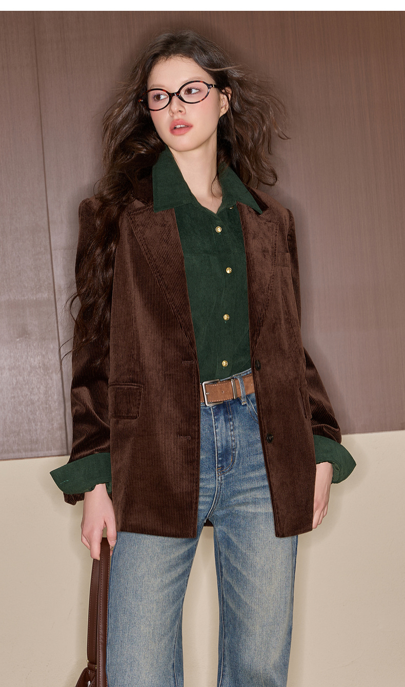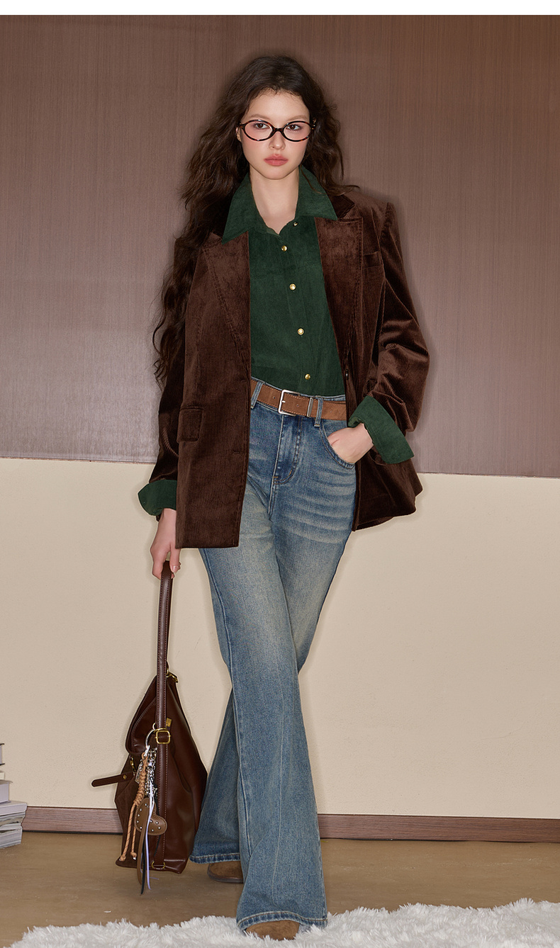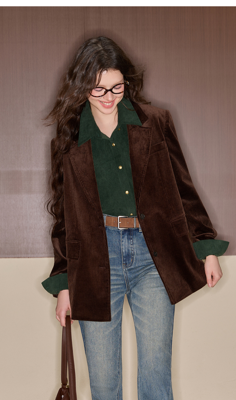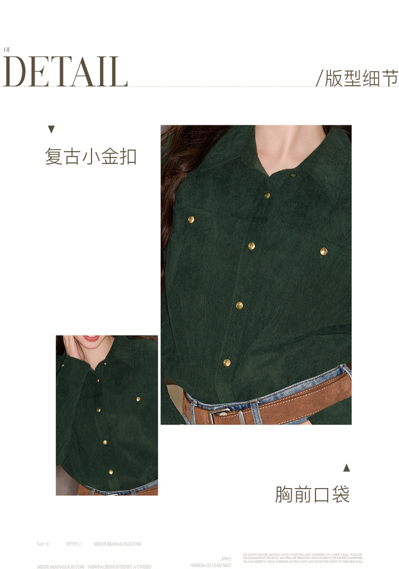 三彩独醒2025冬季新款灯芯绒衬衫翻领宽松衬衣休闲复古F