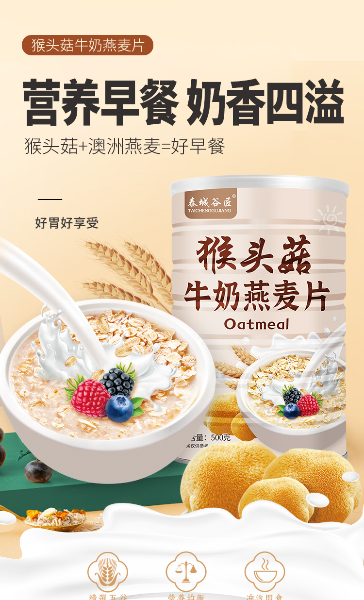 【健康好物,买一送一】猴头菇牛奶燕麦片无糖精今日阳光营养早餐冲饮食品