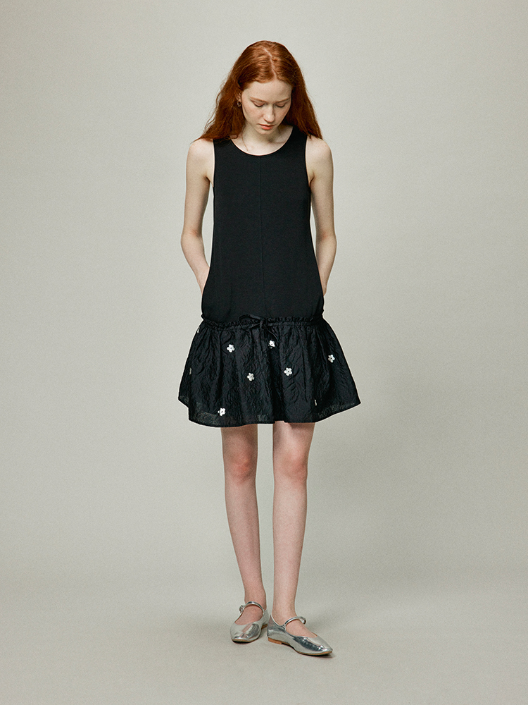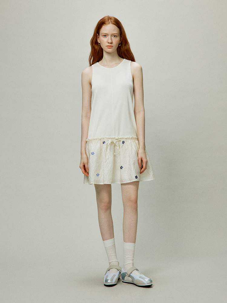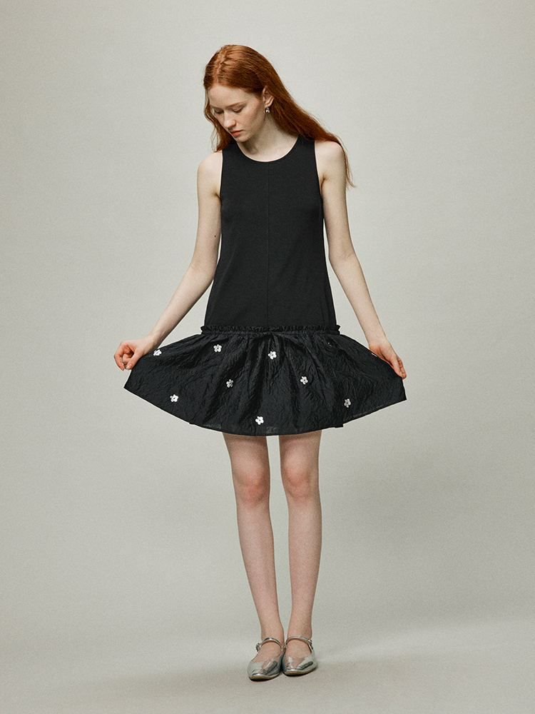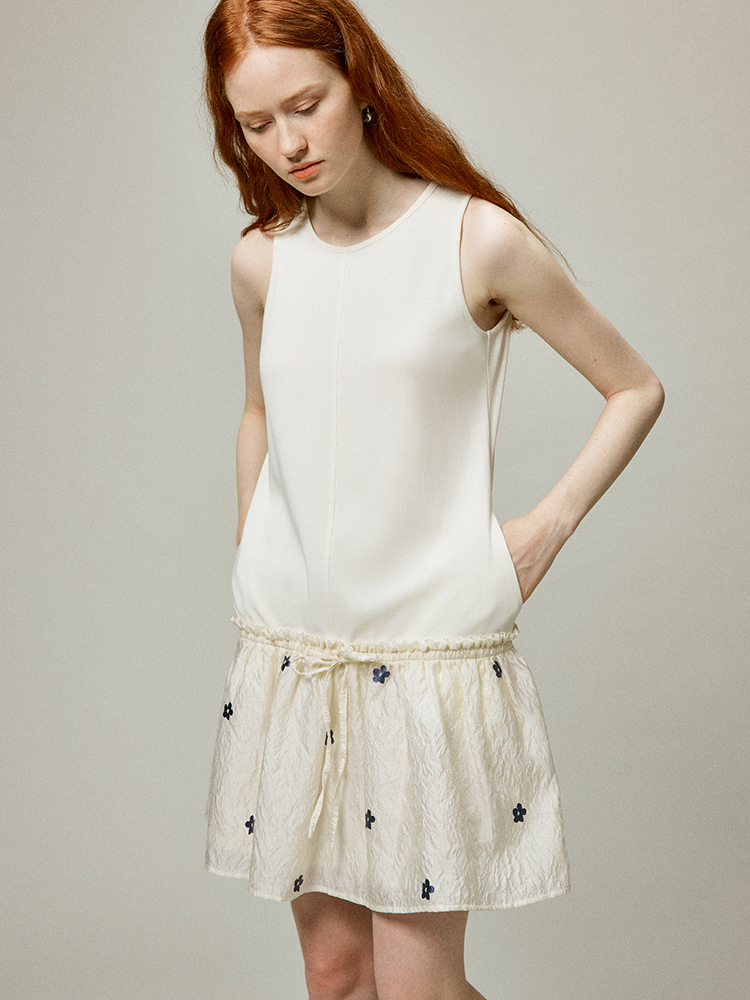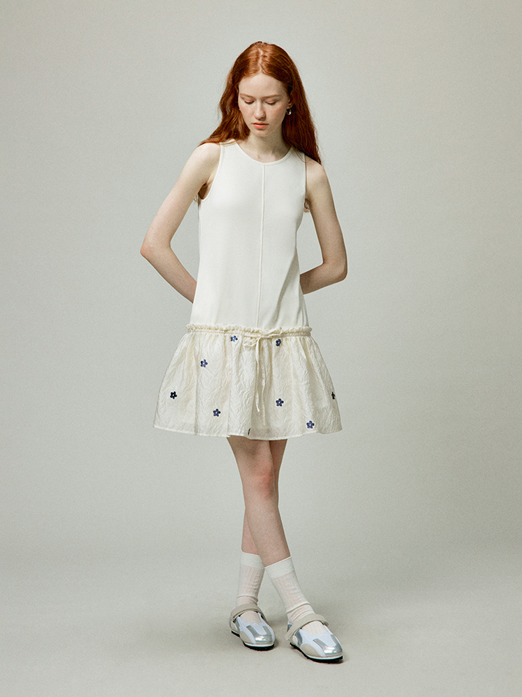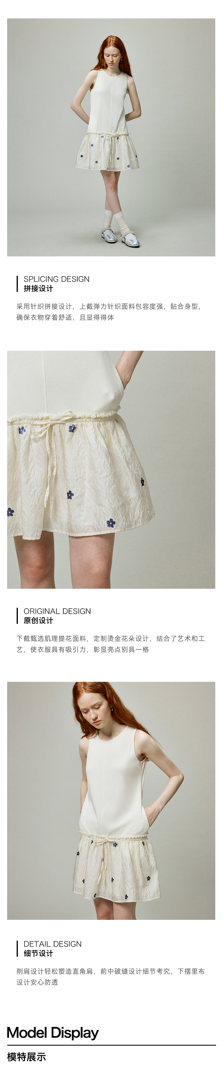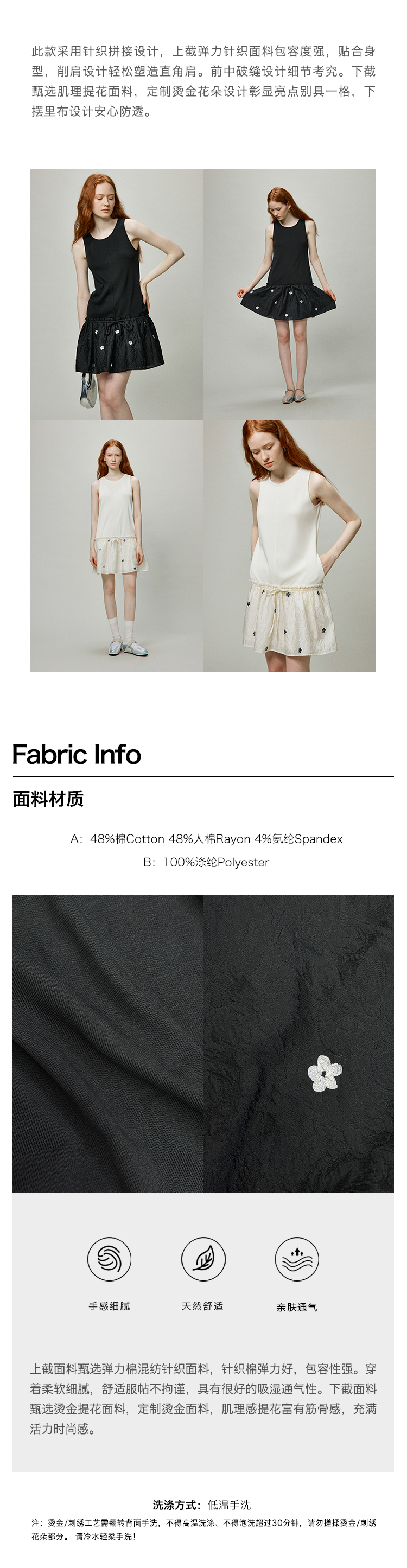 ForPoem 现货 24/SS夏季花朵系列休闲针织拼接提花烫金无袖背心连衣裙