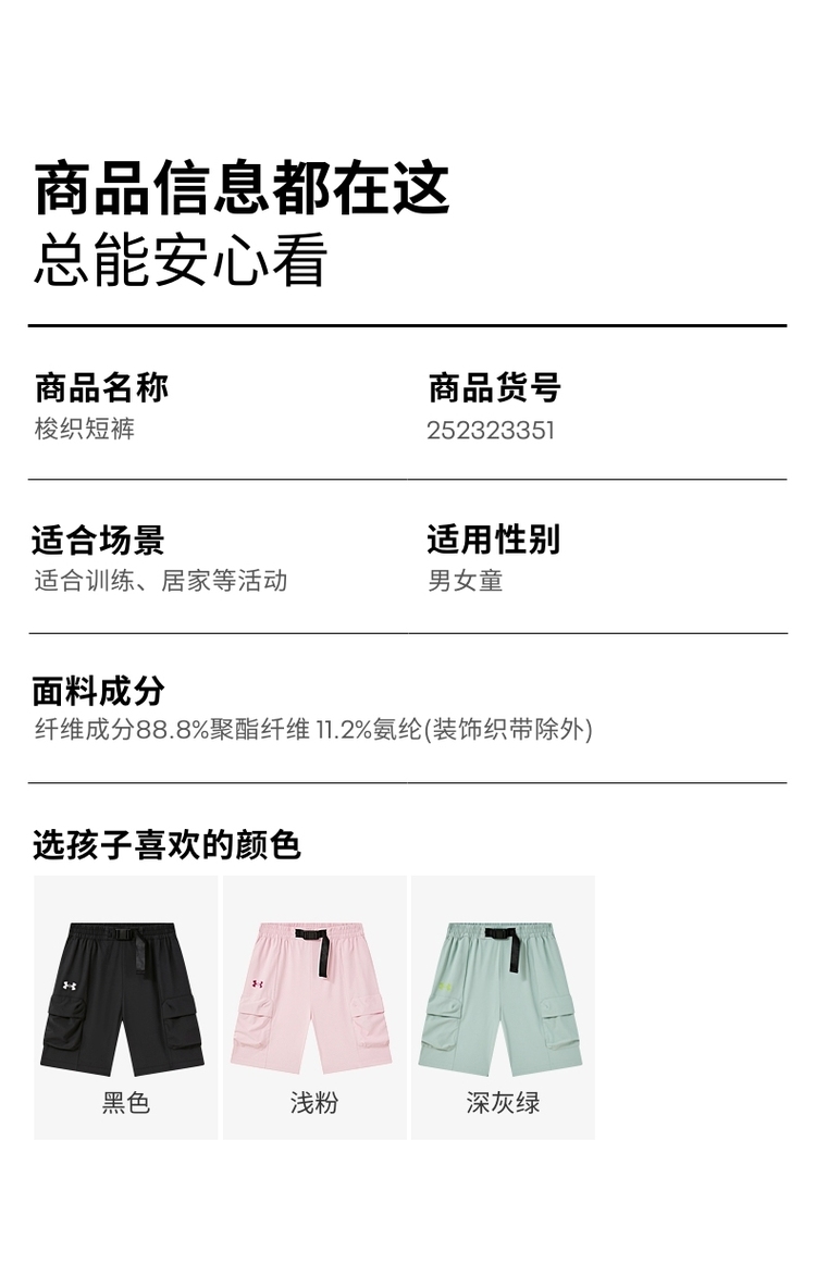【推荐商品十五】安德玛儿童梭织短裤252323351