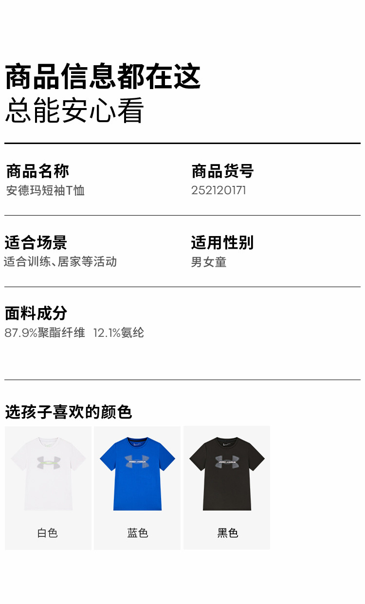 【推荐商品三】安德玛儿童吸湿速干短袖T恤252120171
