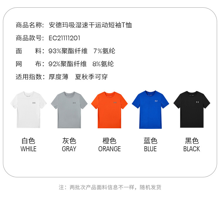 【推荐商品五】安德玛儿童速干短袖T恤21111201