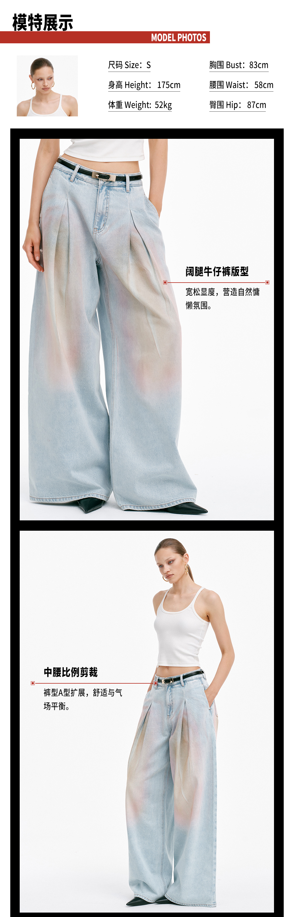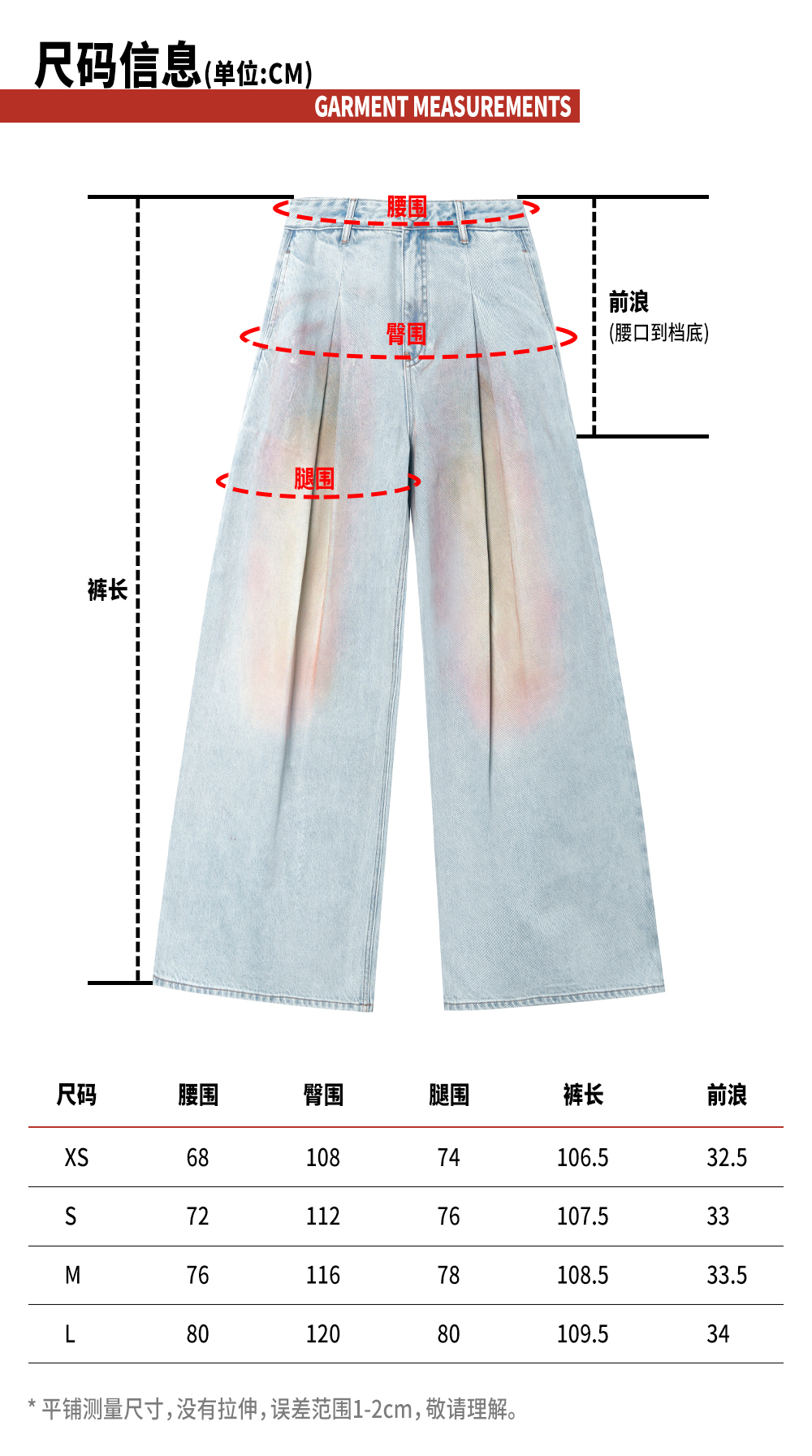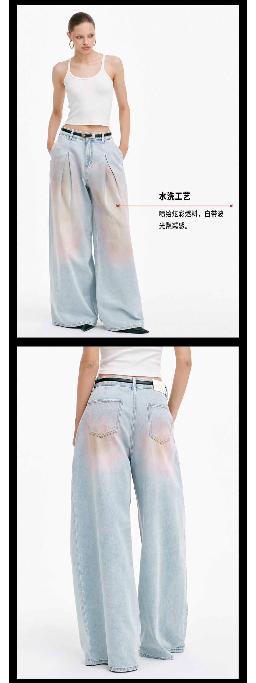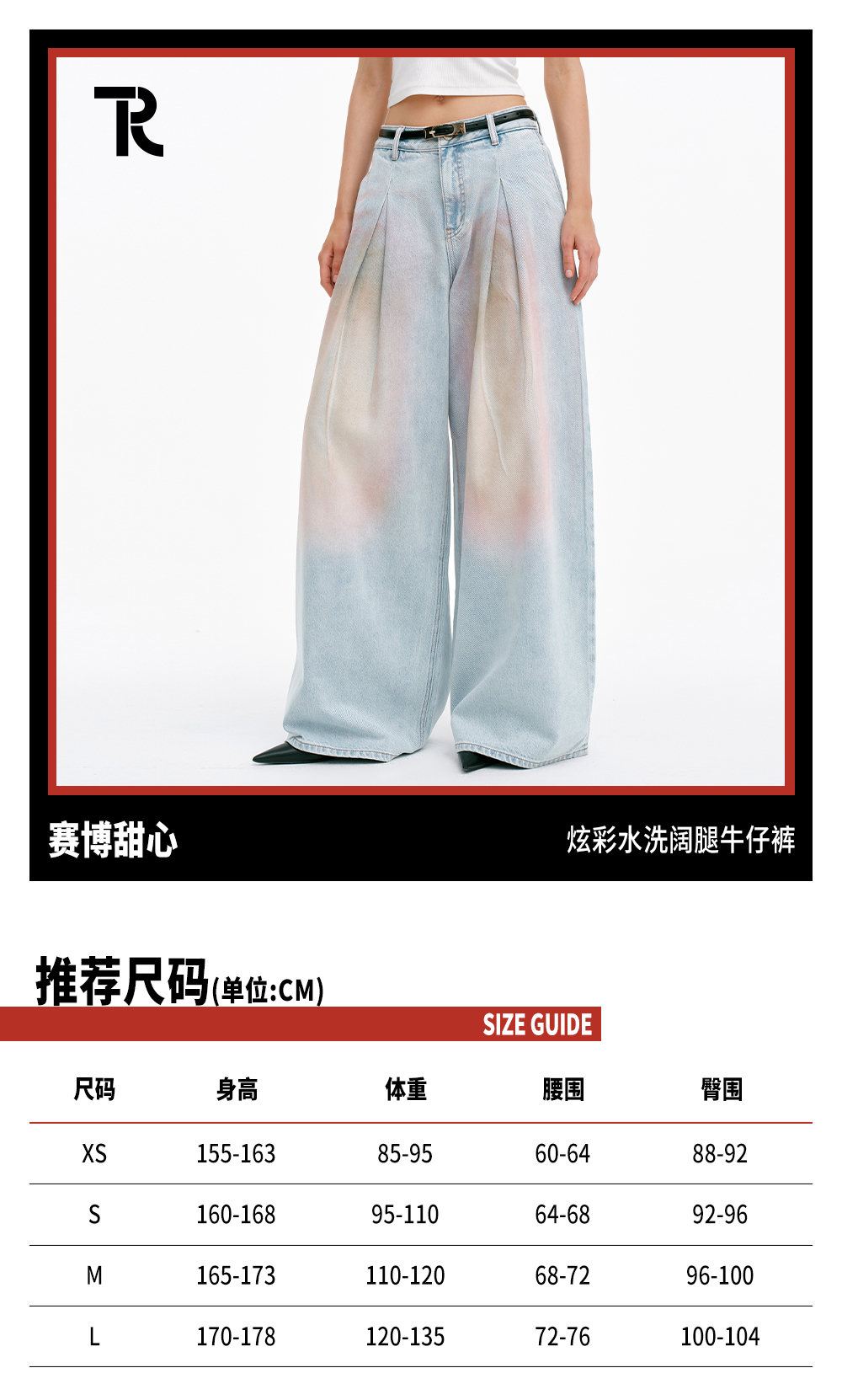 TR她热 赛博甜心 浅蓝色炫彩水洗复古显瘦休闲宽松阔腿牛仔裤长裤