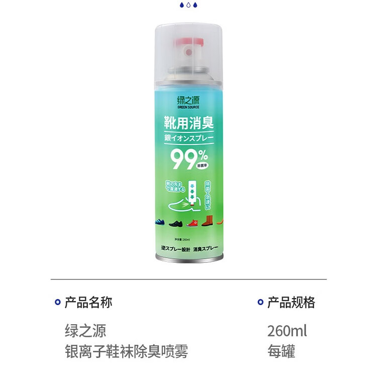 绿之源 银离子鞋袜除臭剂 运动球鞋皮鞋除脚臭去异味脚汗鞋袜鞋柜清香剂 银离子鞋袜除臭喷雾260ml