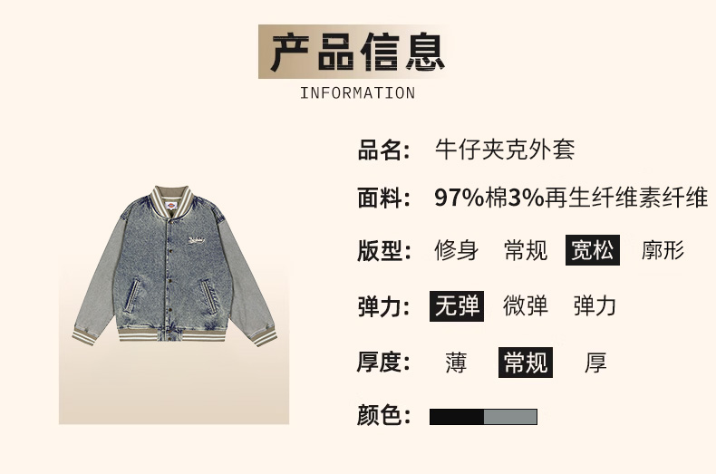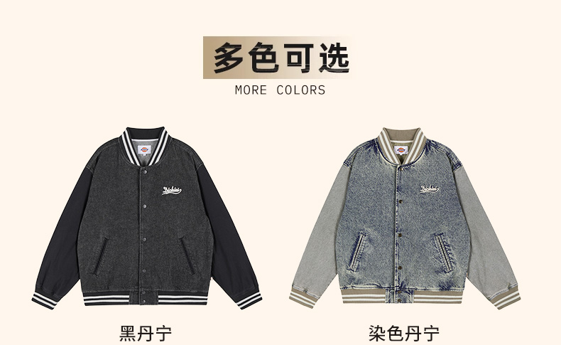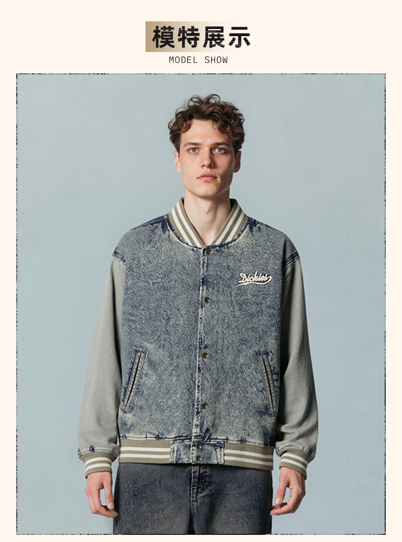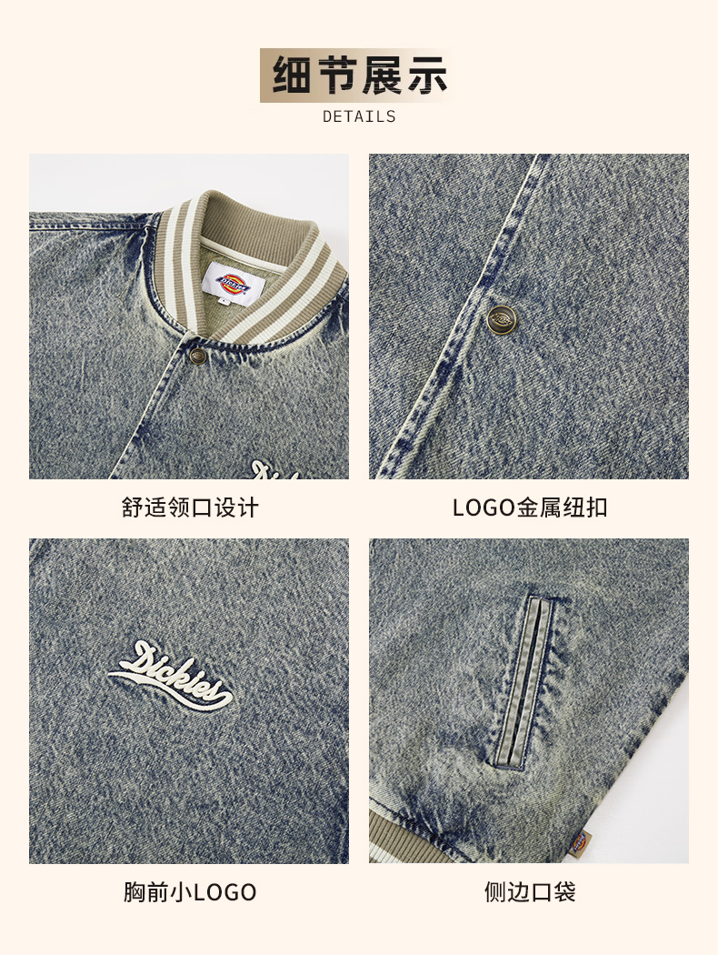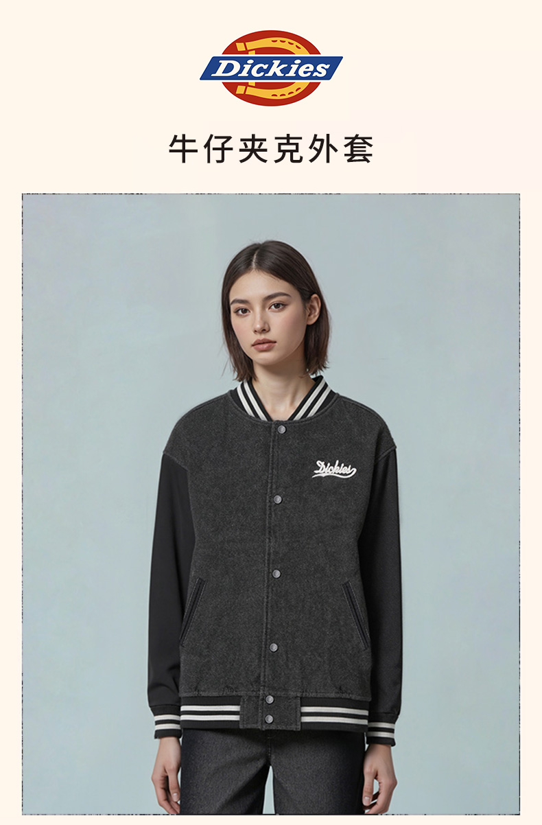 Dickies字母印花牛仔棒球服男女同款美式复古学院风宽松夹克外套DK0A87RV
