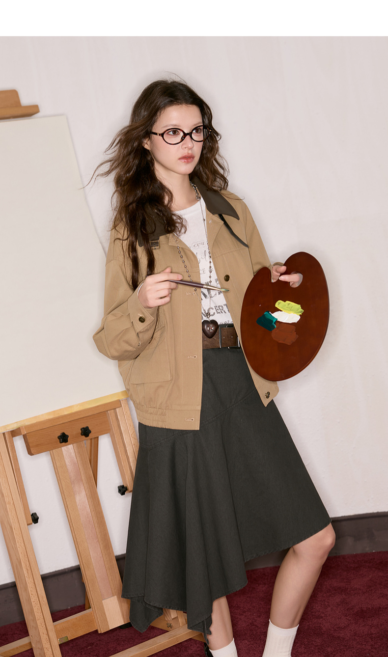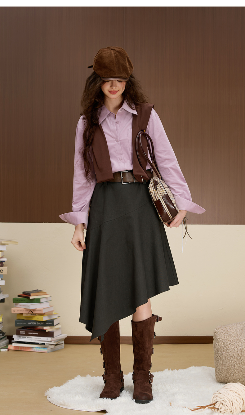 【100棉】三彩独醒2025秋季新款复古半身裙宽松A字裙设计感F