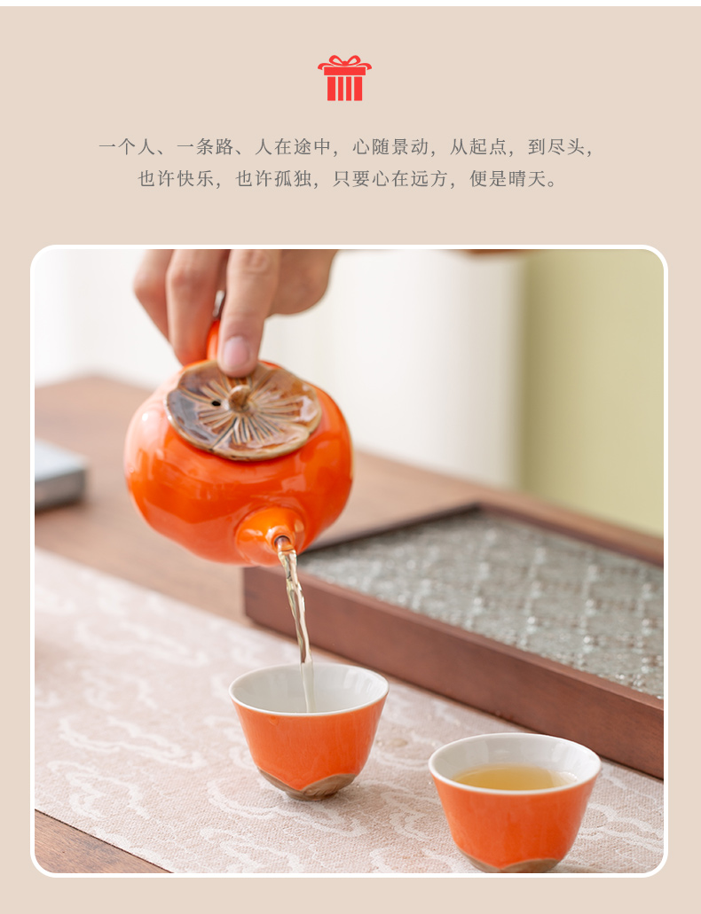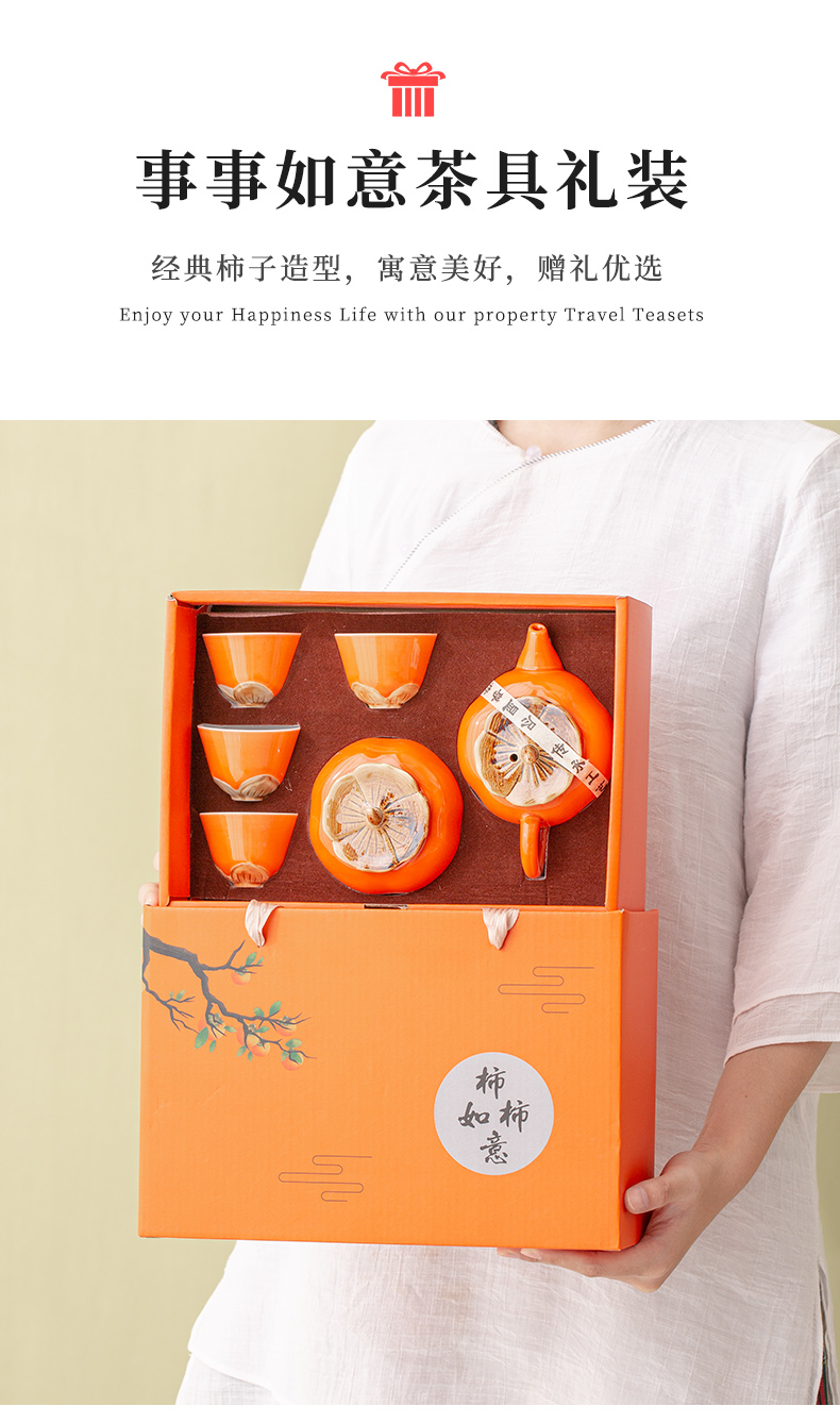 柿柿如意,功夫茶具套装,国潮礼盒,好寓意