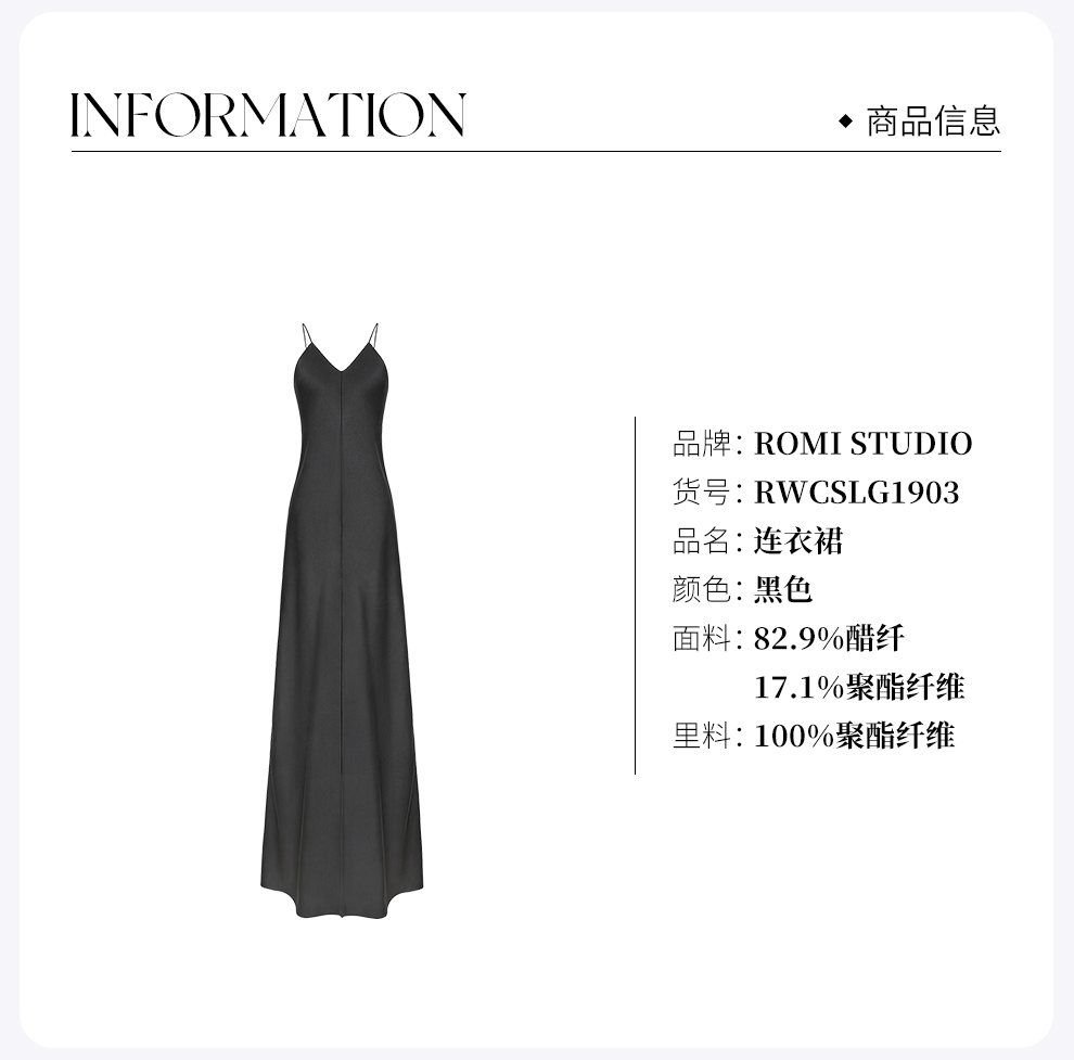 ROMI STUDIO“优雅相随”重磅醋酸光泽垂感V领吊带礼裙 RWCSLG1903