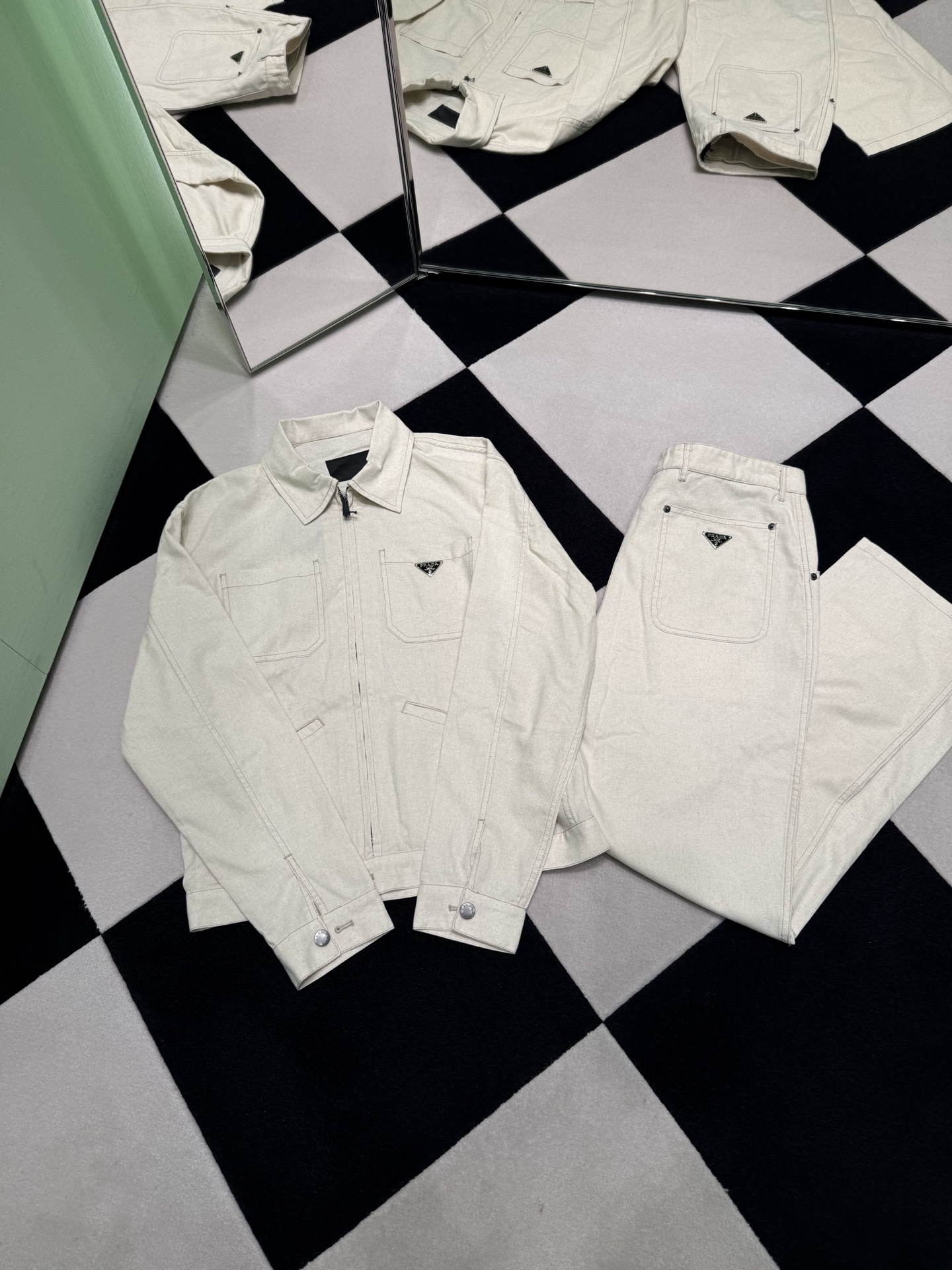 PRADA25FW三角标棉质长裤‼️整条裤子13700购买ZP拆解打造,定制棉质帆布面料,做到100%全棉进口纱线,前幅插袋设计,配有票袋,门襟开模定制PRADA字母logo拉链,后幅纽扣翻盖口袋,贴袋饰以三角标字母标识徽章,真正做到1:1copy 闭眼入 码数:S M L XL