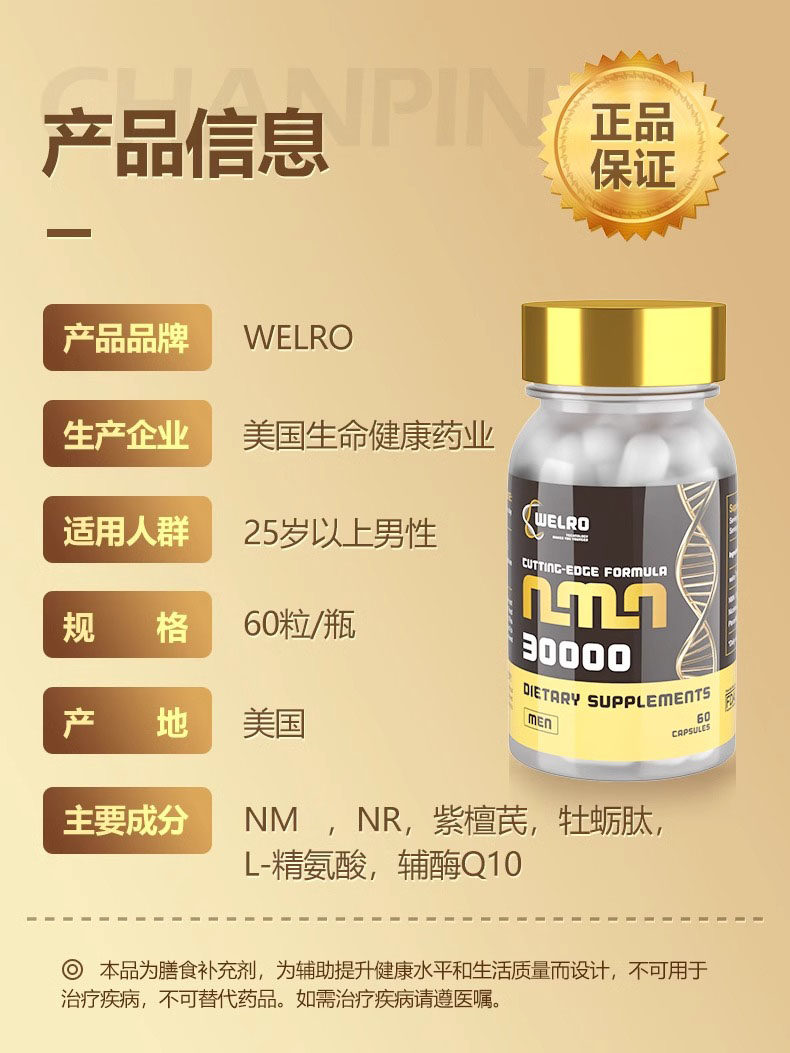 韦诺进口生命健康welro男士女士款30000美国第5代nad+胶囊