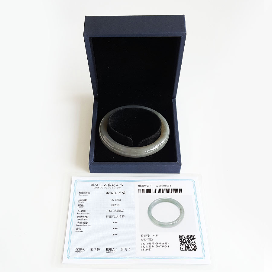 名称 | 天然无杂裂青海料烟紫56号和田玉手镯 |