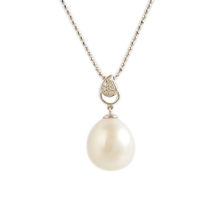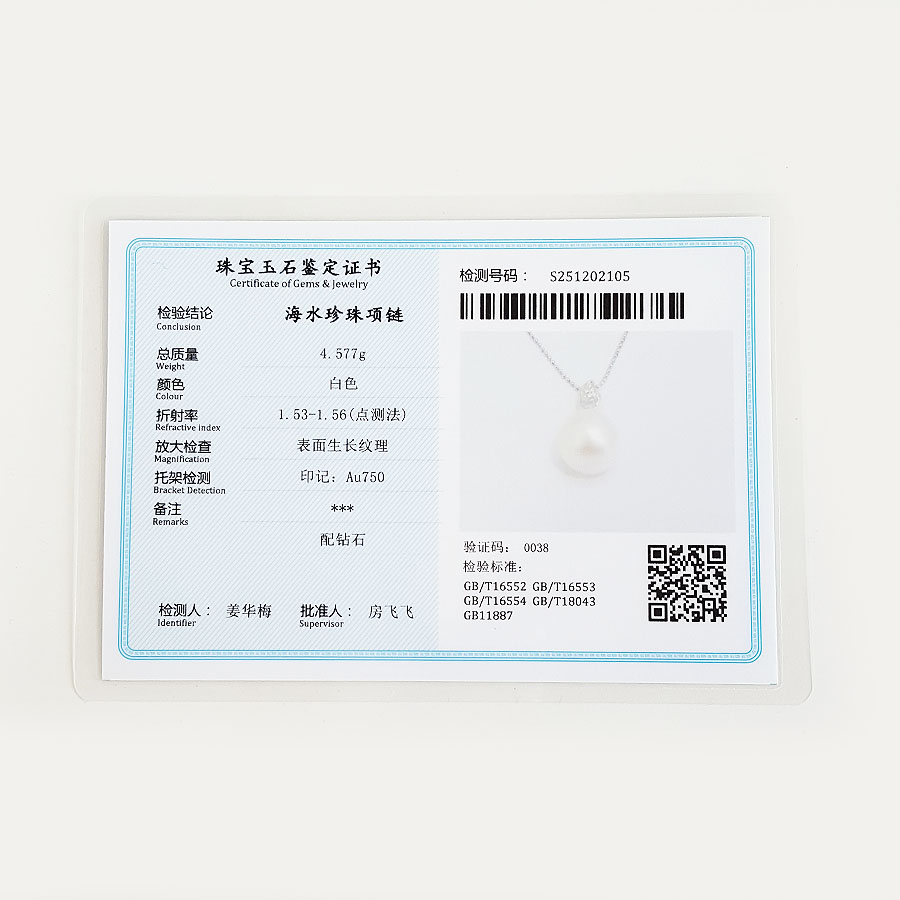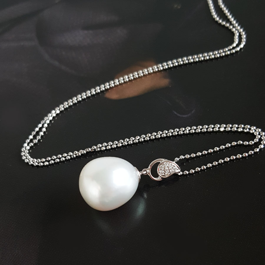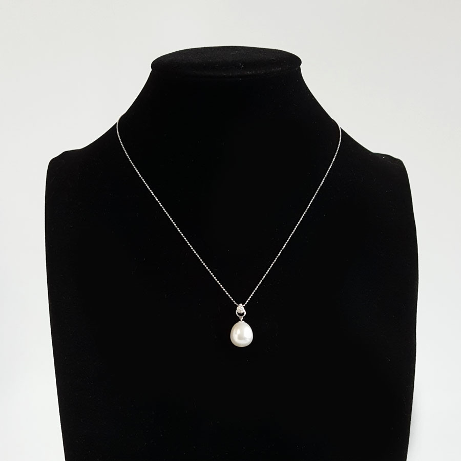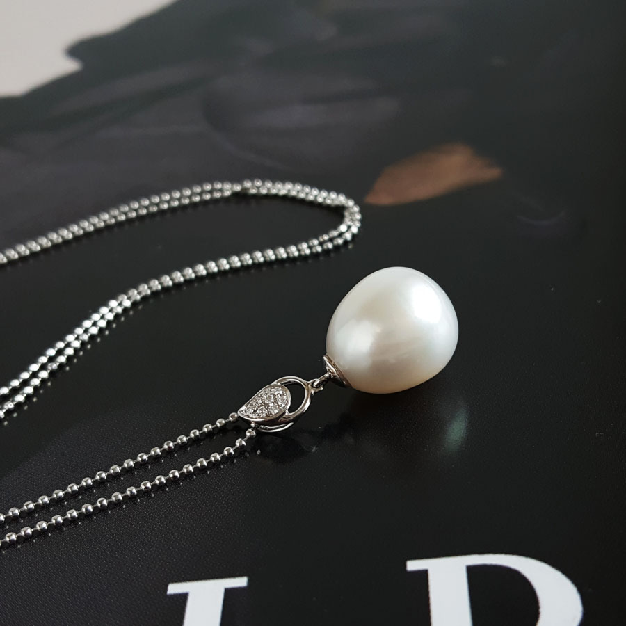 名称 | AU750白金镶钻镶天然约13.4*11.1MM白色海水珍珠吊坠项链 |