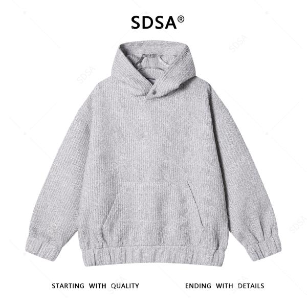 SDSA男士秋冬新款痞帅男装时尚肌理感按扣连帽卫衣气质网红款上衣