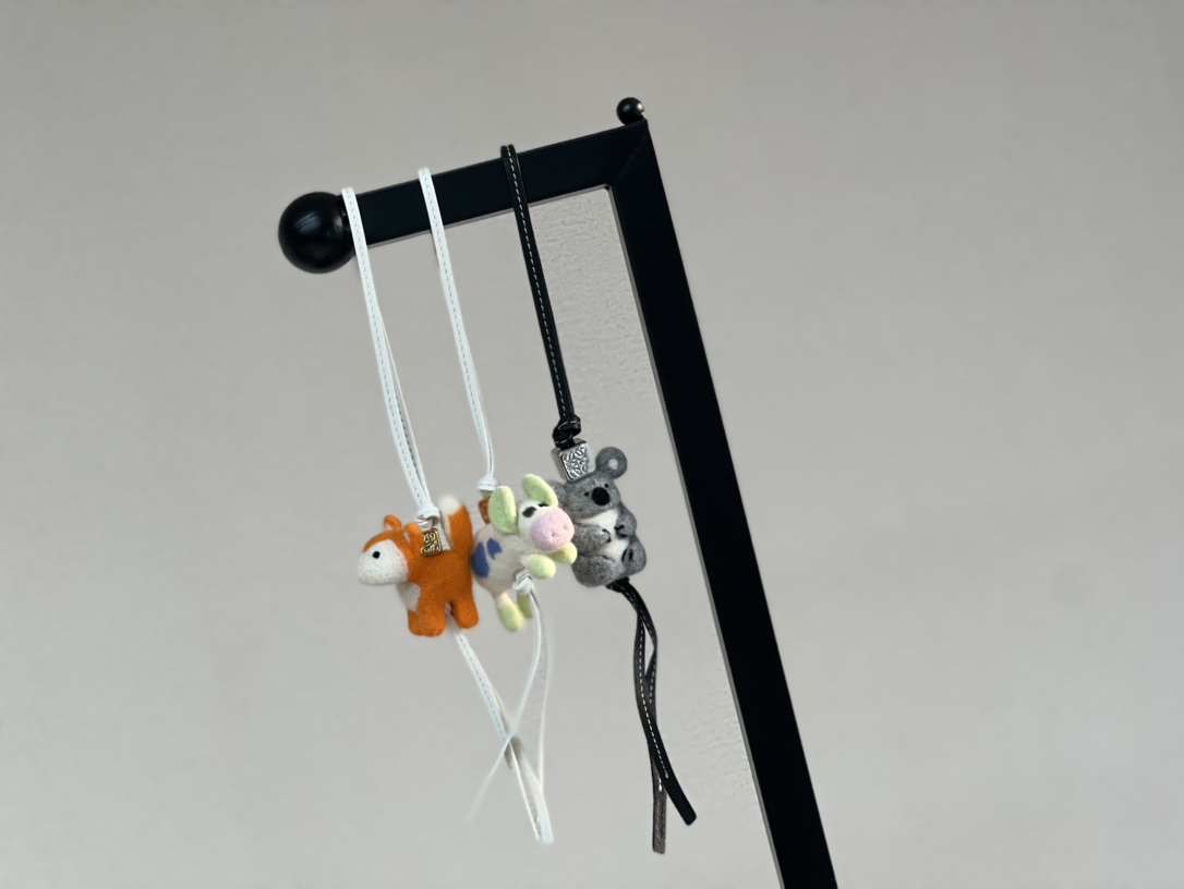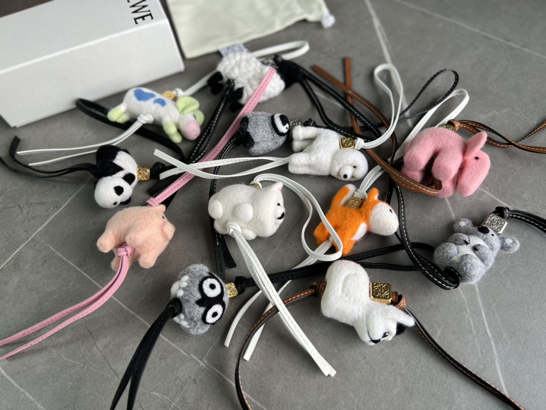 罗意威动物园毛毡系列 包包钥匙扣挂件,超萌超可爱而且百搭,都是纯手作戳出来的,原厂的五金皮料,材质是纯羊毛,挂饰和柜子工艺一致,手感结实不松垮,一共12个款,纯羊毛的手搓挂件,紧实度和还原的细节表情都是最顶级的。
