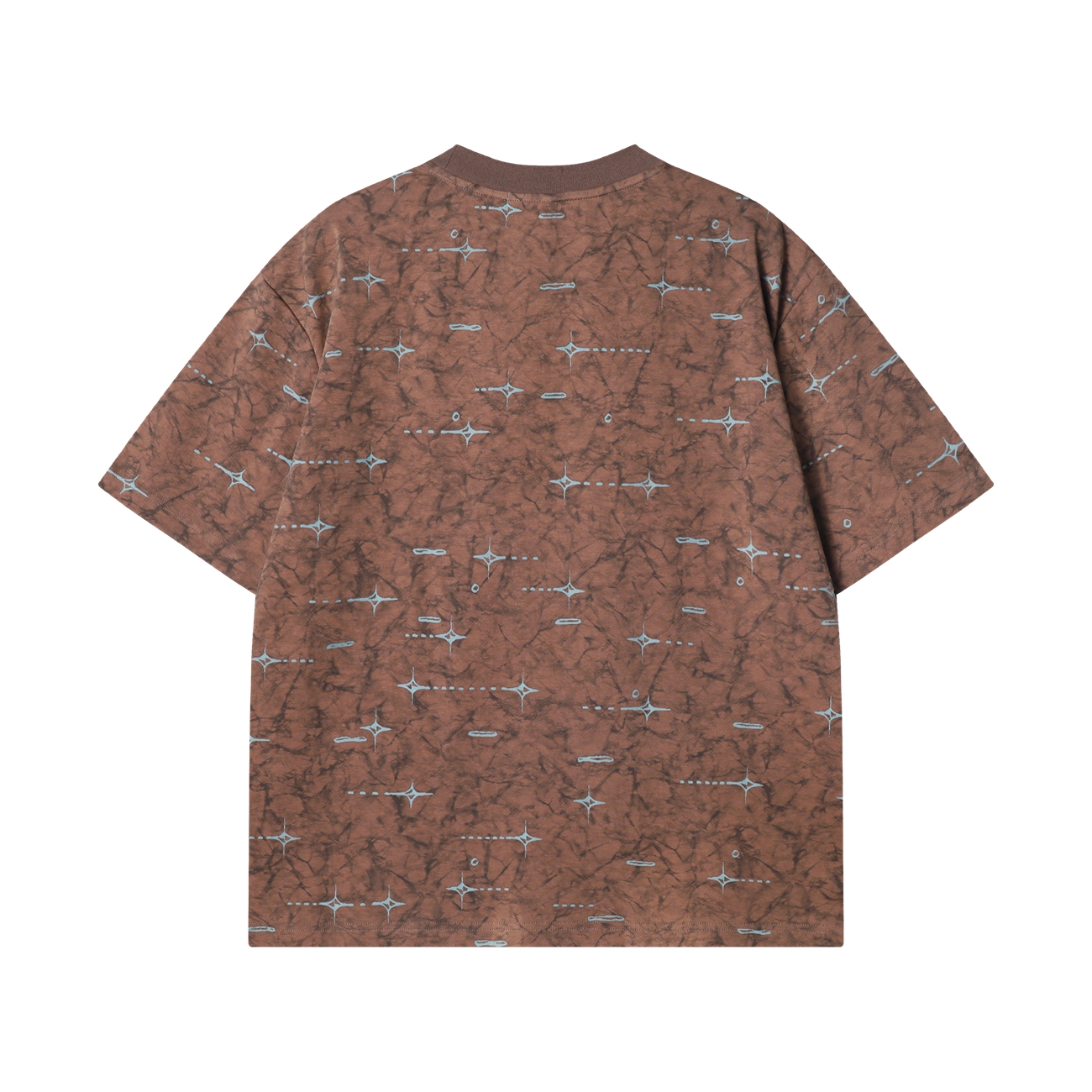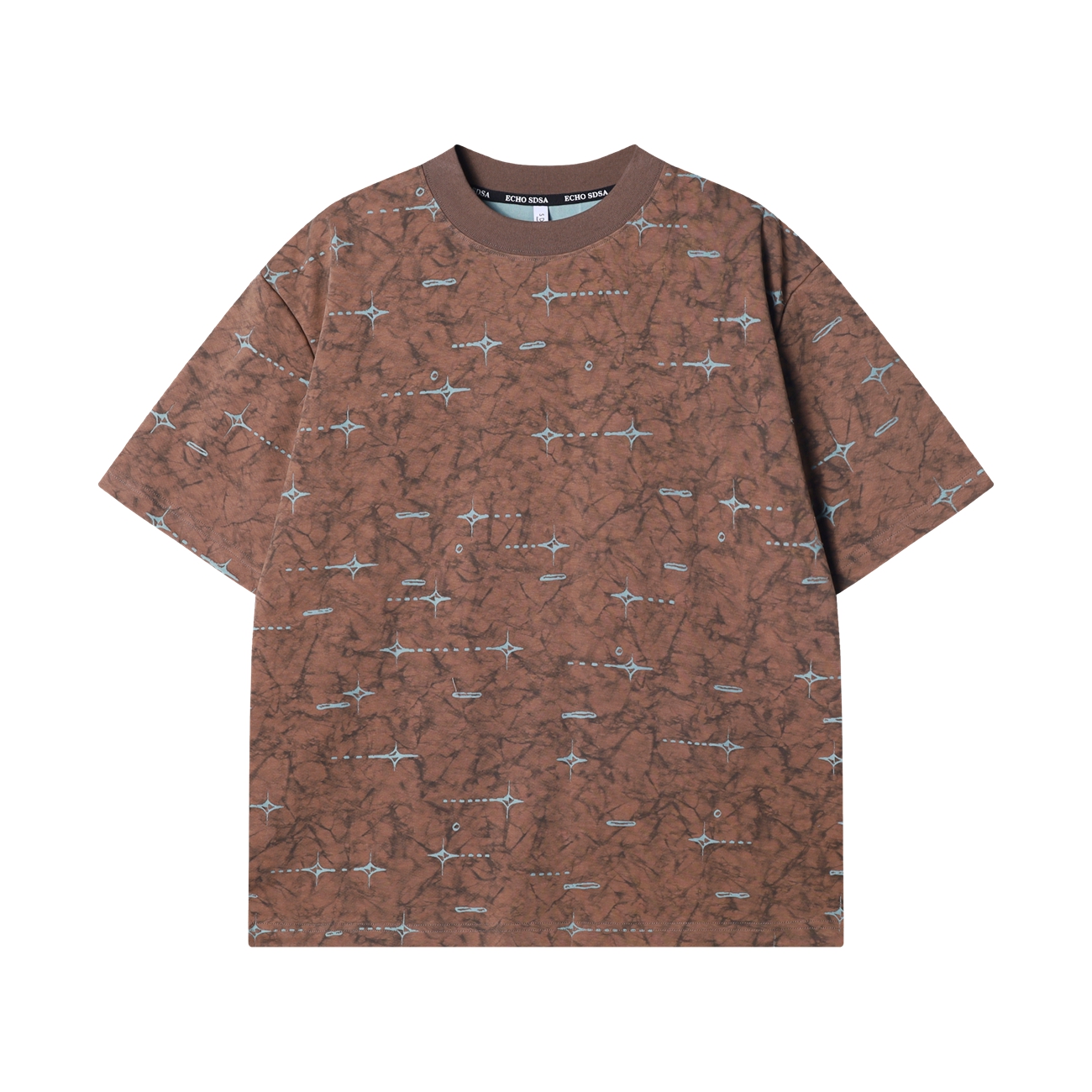 T2794夏季高级感新款潮牌撞色晕染印花圆领短袖T恤百搭情侣复古上衣