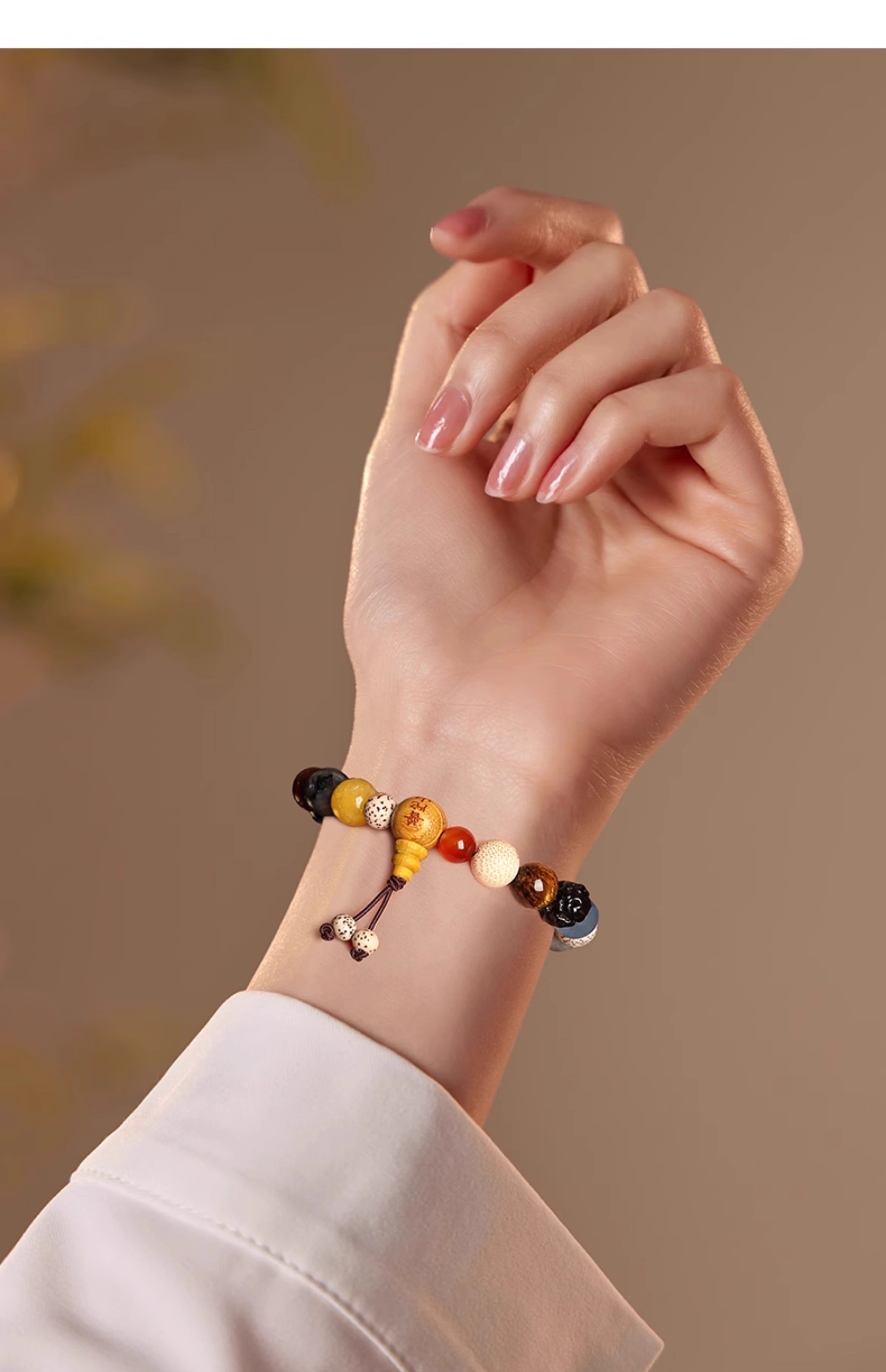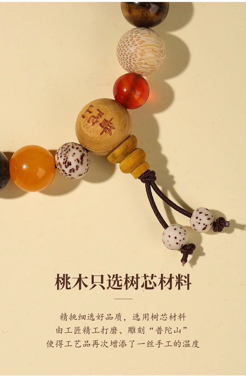 【普陀山】七段防惊东南野生桃木枝去掉坏东西五色线朱砂随身携