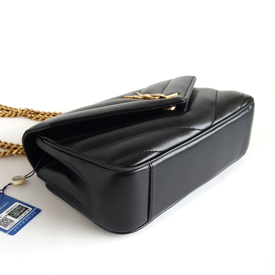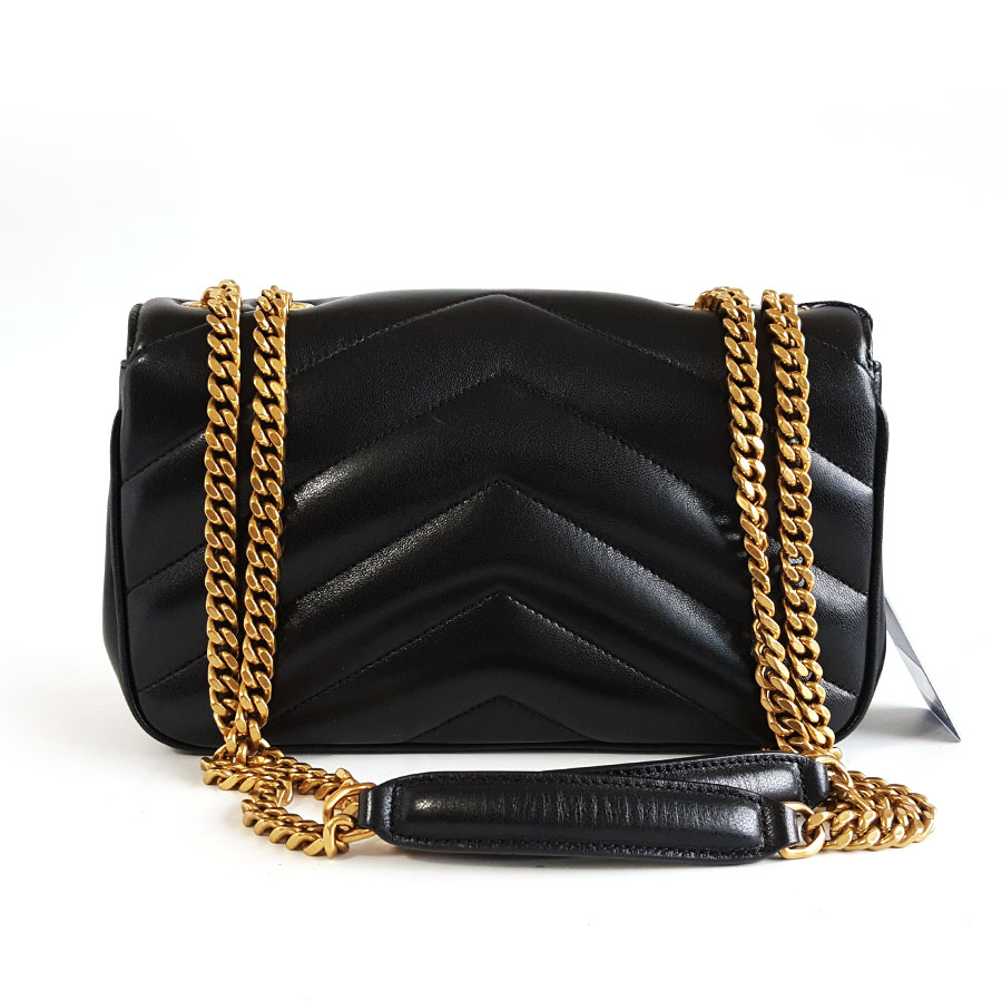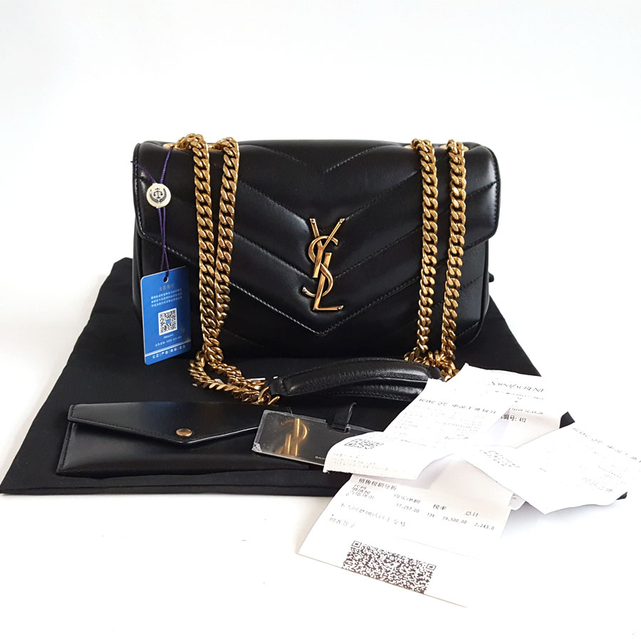 【95新】YSL圣罗兰801437小号黑金羊皮LOULOU链条包单肩包女士140326AK10