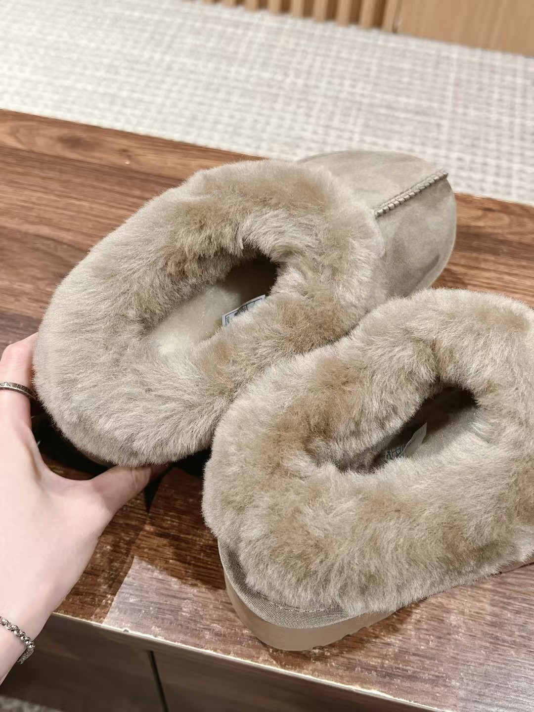 这款一看就能感觉到秋冬的氛围感,有点美式的感觉,毛茸茸的很舒服,温暖又时髦。皮毛一体 隆丰一级 eva 太阳花大底