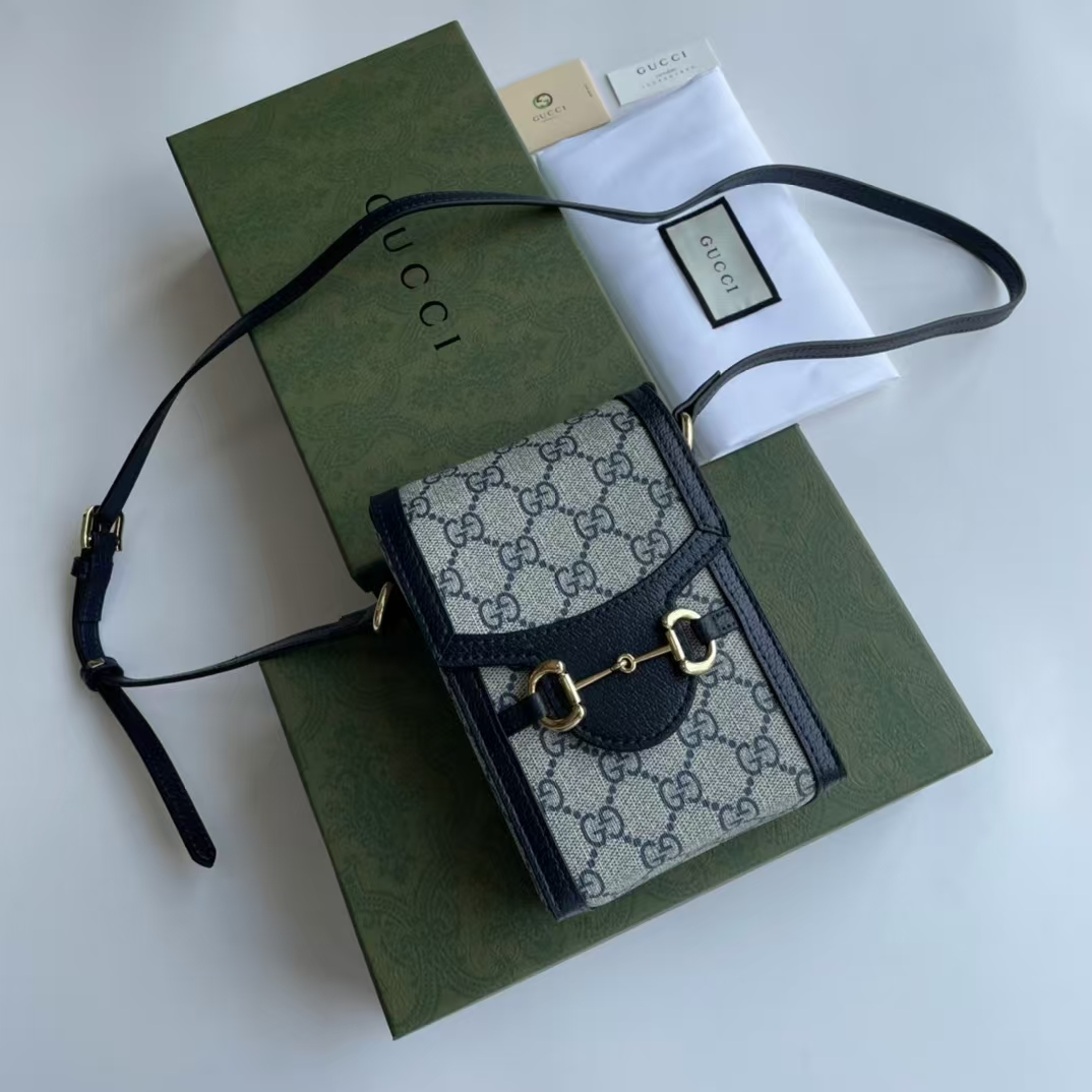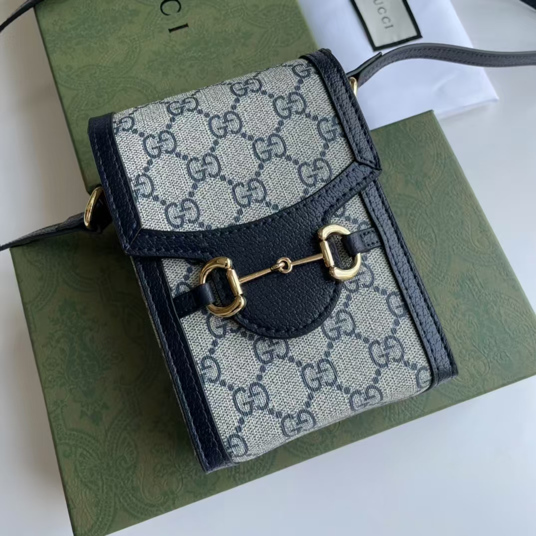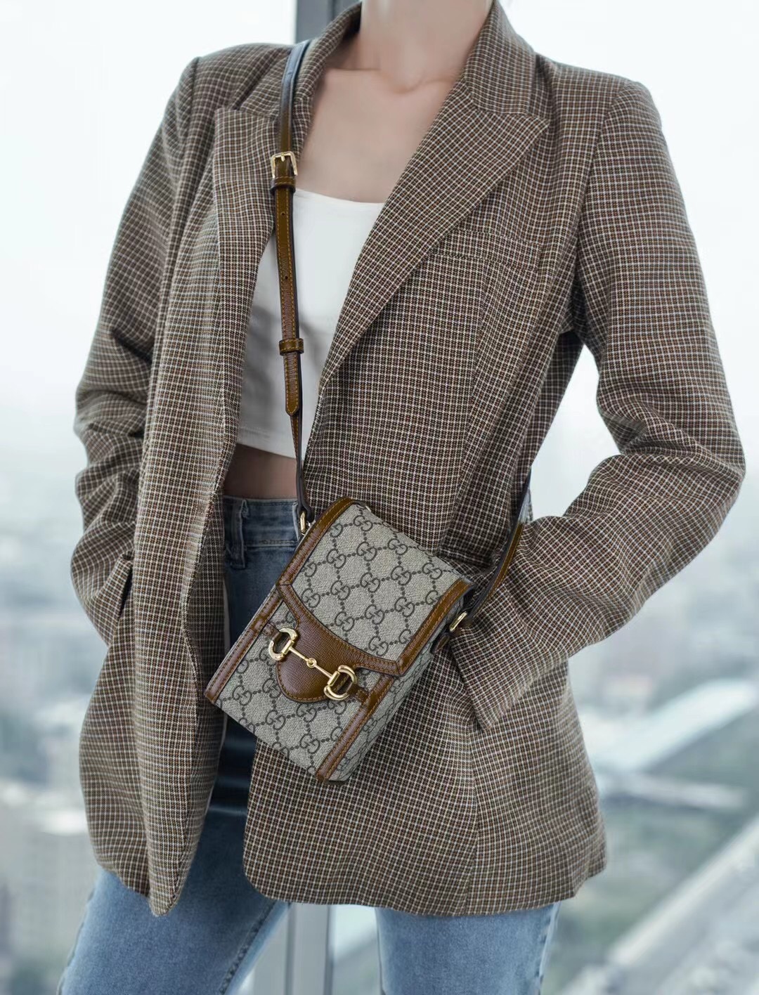 采用品牌经典双字母交织图案帆布制作,搭配小巧别致的长方形造型。
