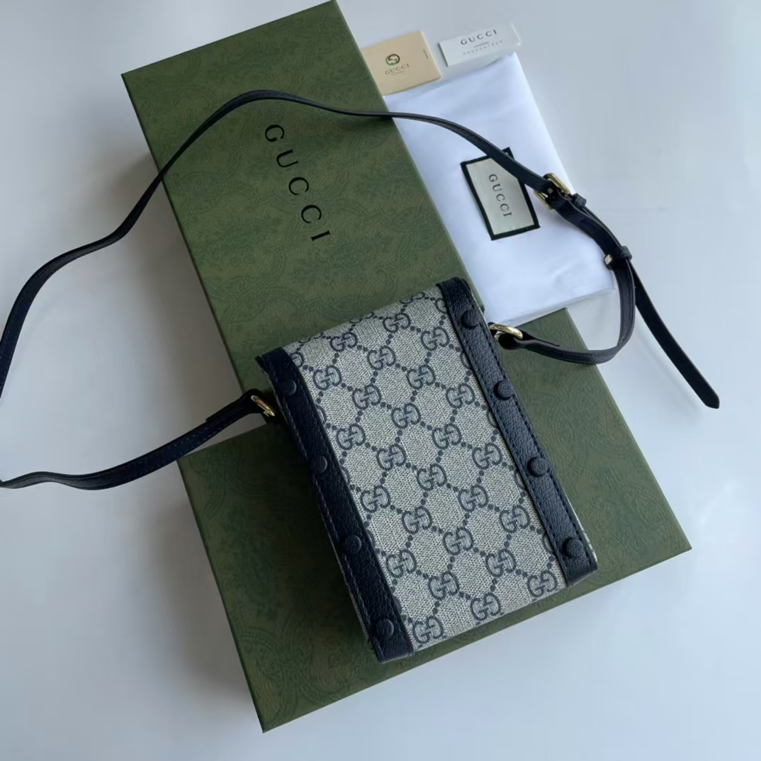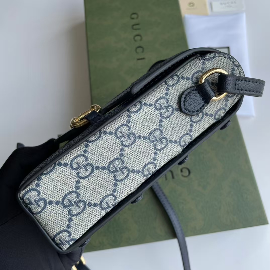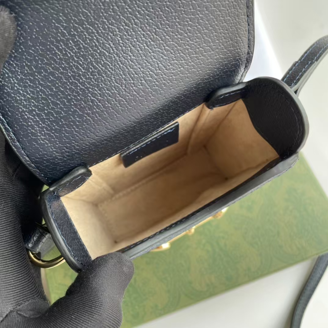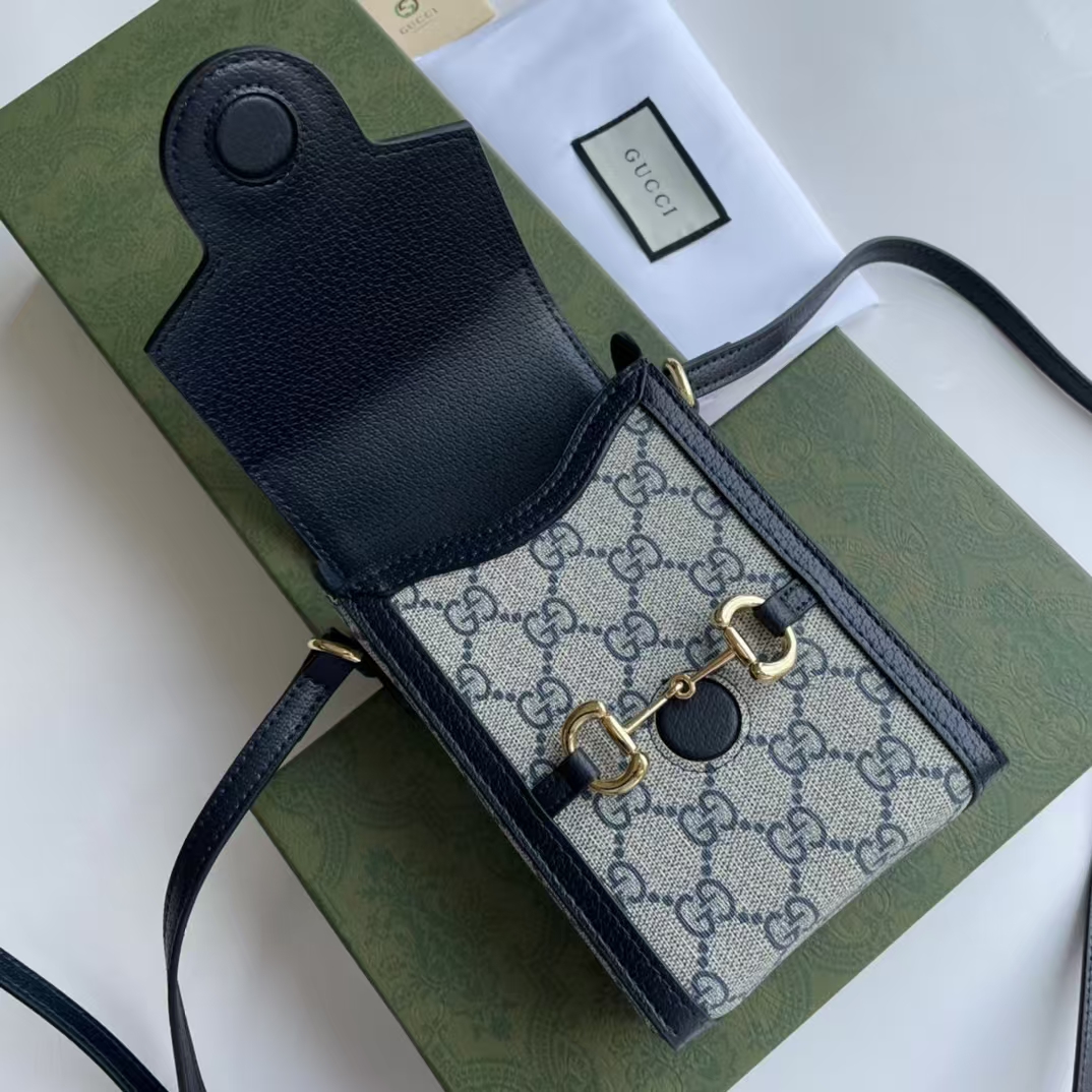 采用品牌经典双字母交织图案帆布制作,搭配小巧别致的长方形造型。