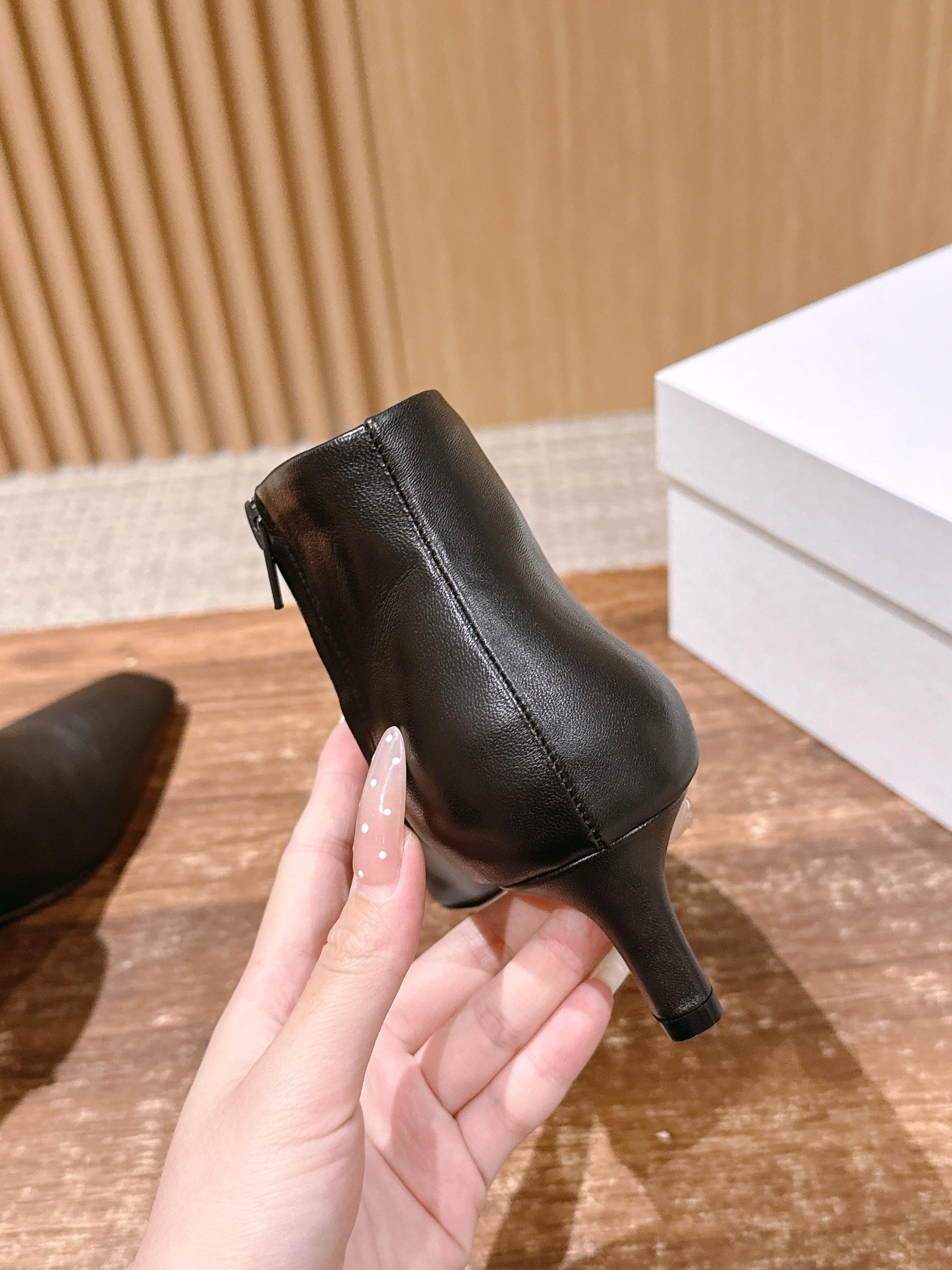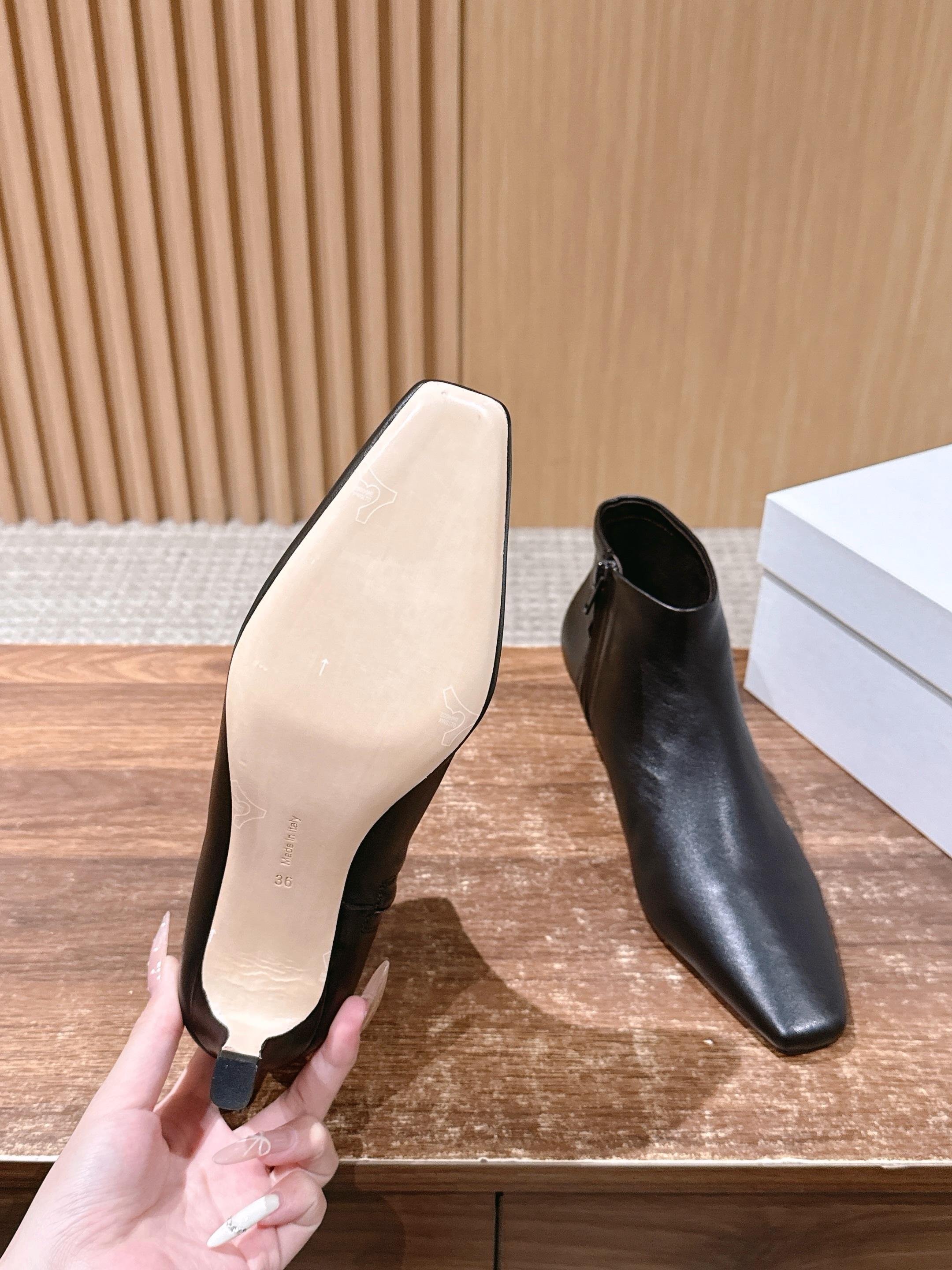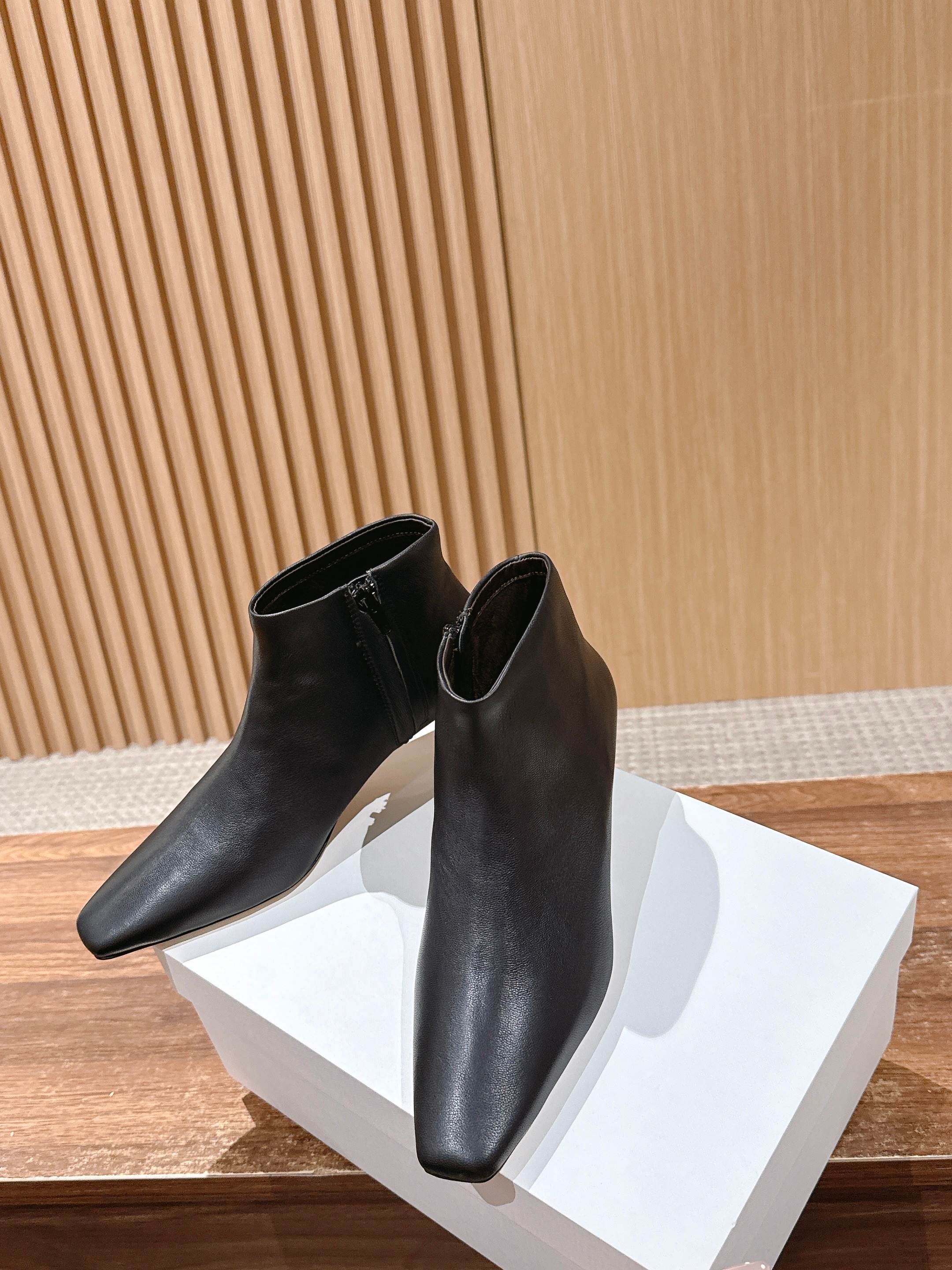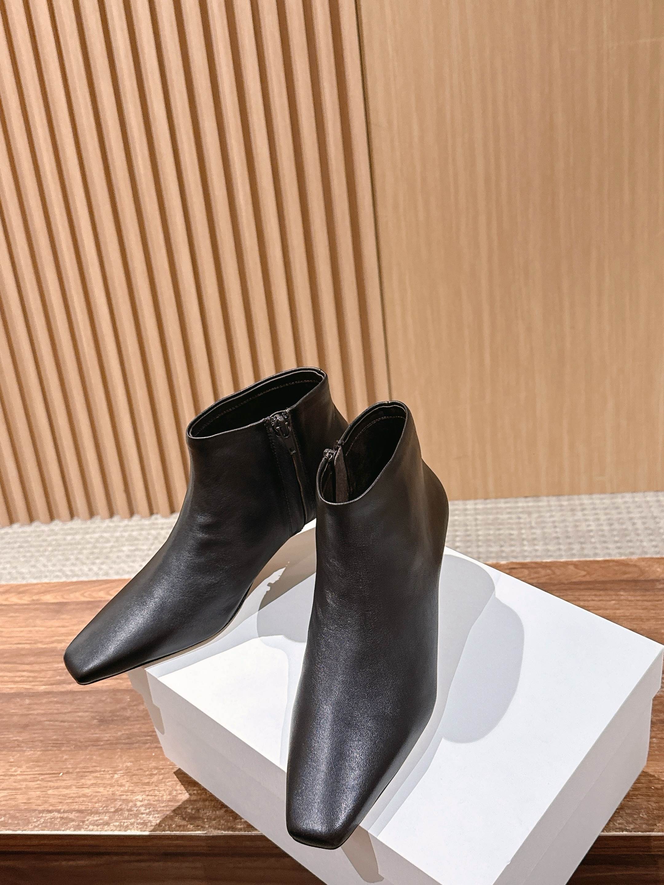 The Row 高品质猫跟侧拉链短靴 TR作为小众品牌来说是一个骄傲!完全不输众多大牌子~不仅富有设计感 还十分好穿 每一处的细节都能把脚修饰的修长得体!小猫跟上脚稳妥舒适不累,鞋头方型设计能够让趾更加舒适放松,胖瘦脚型都能轻松驾奴,并选用细腻小羊皮打造出一个触感柔软且缺不失挺括的外观~为日常搭配注入轻盈与优雅 用料也得说里外进口小羊皮,整双鞋子下来用料特别大,中皮大底整片全包底,报废利极高,保证舒适性的同时又能从图片看出皮料质感 大底:真皮大底/前掌注塑 这款靴无论是搭配优雅裙装还是休闲裤装都能打造精致的造型,非常推荐给大家! 尺码:35/36/37/38/39/40(40不退换)