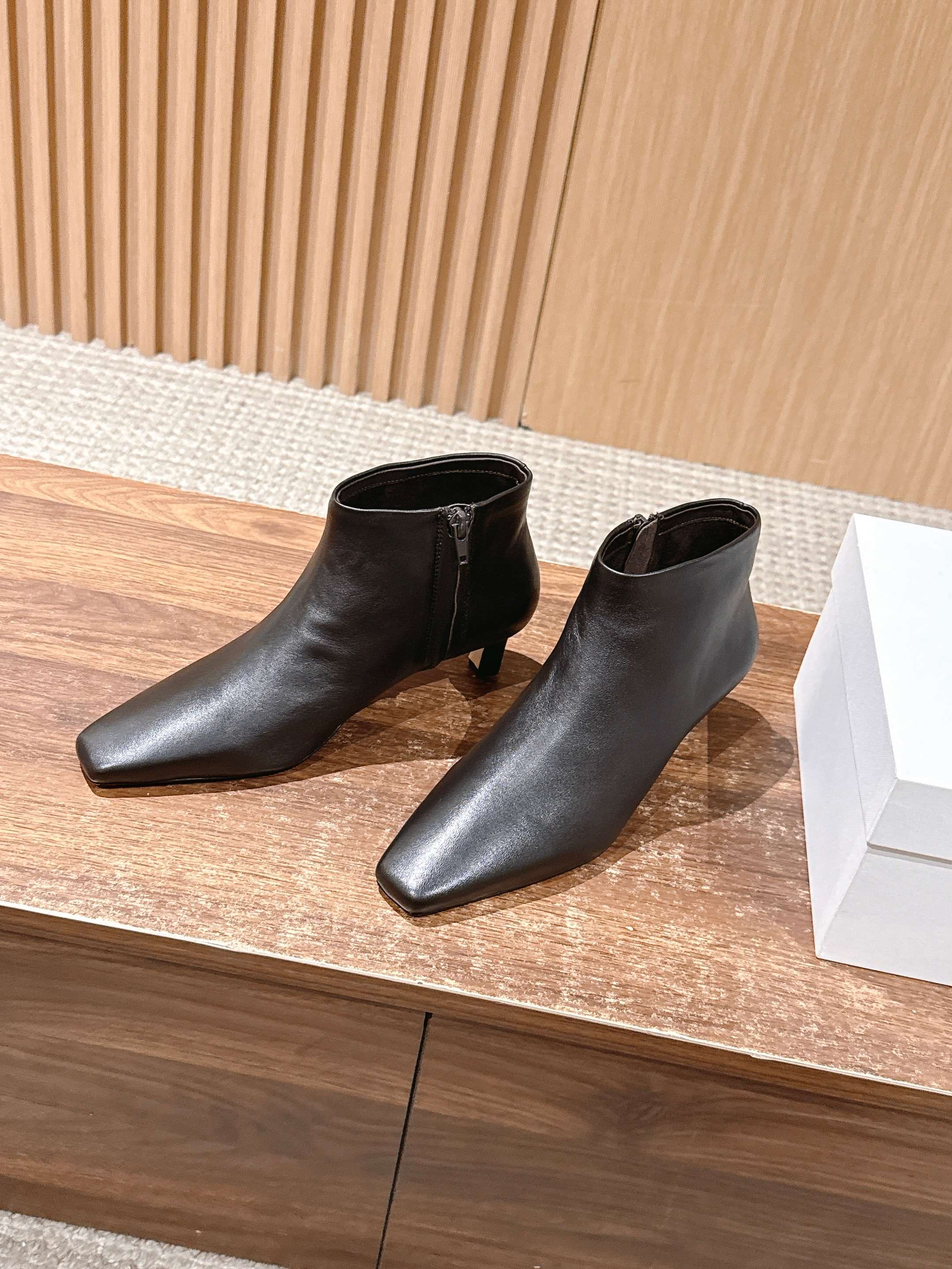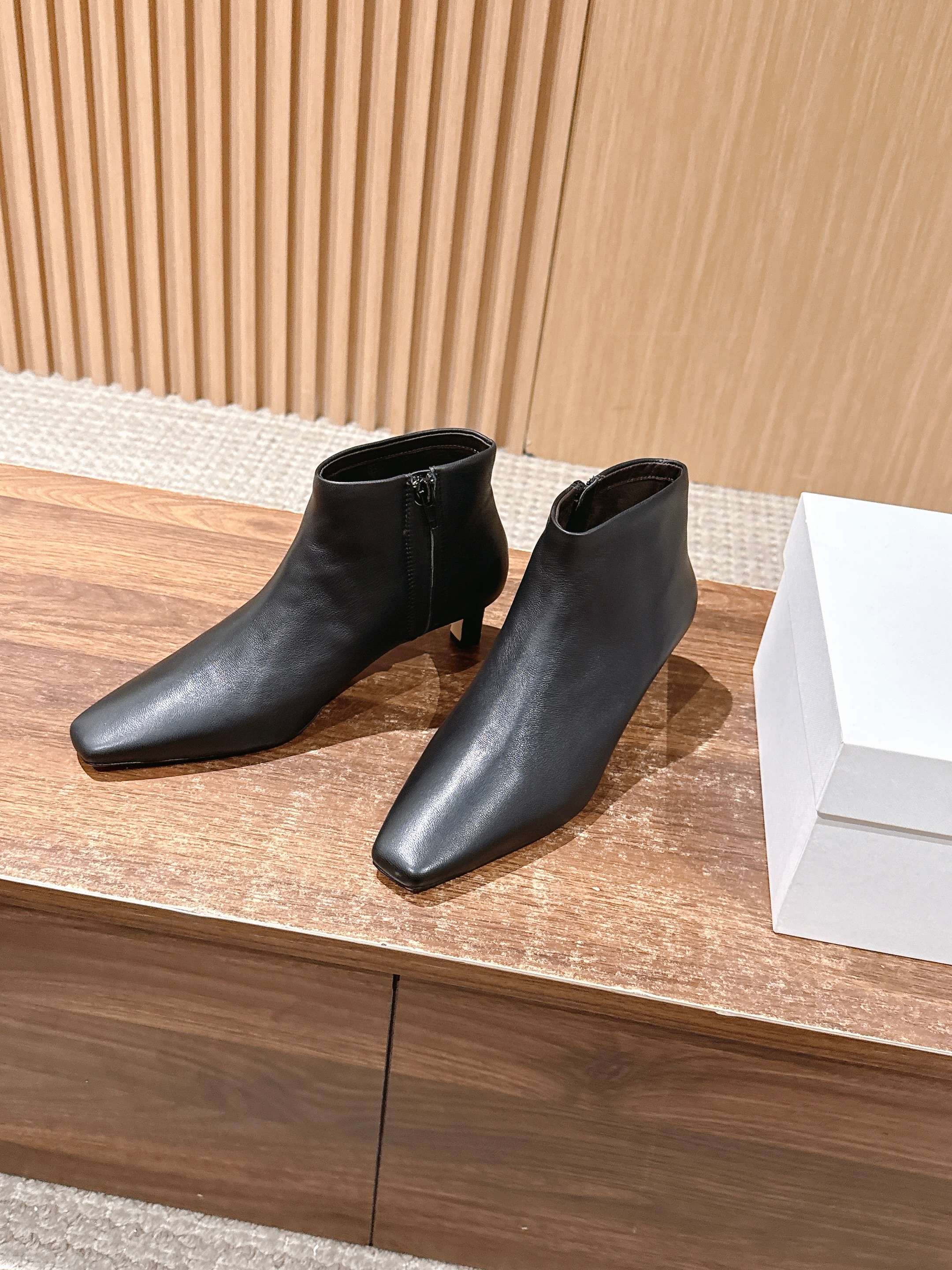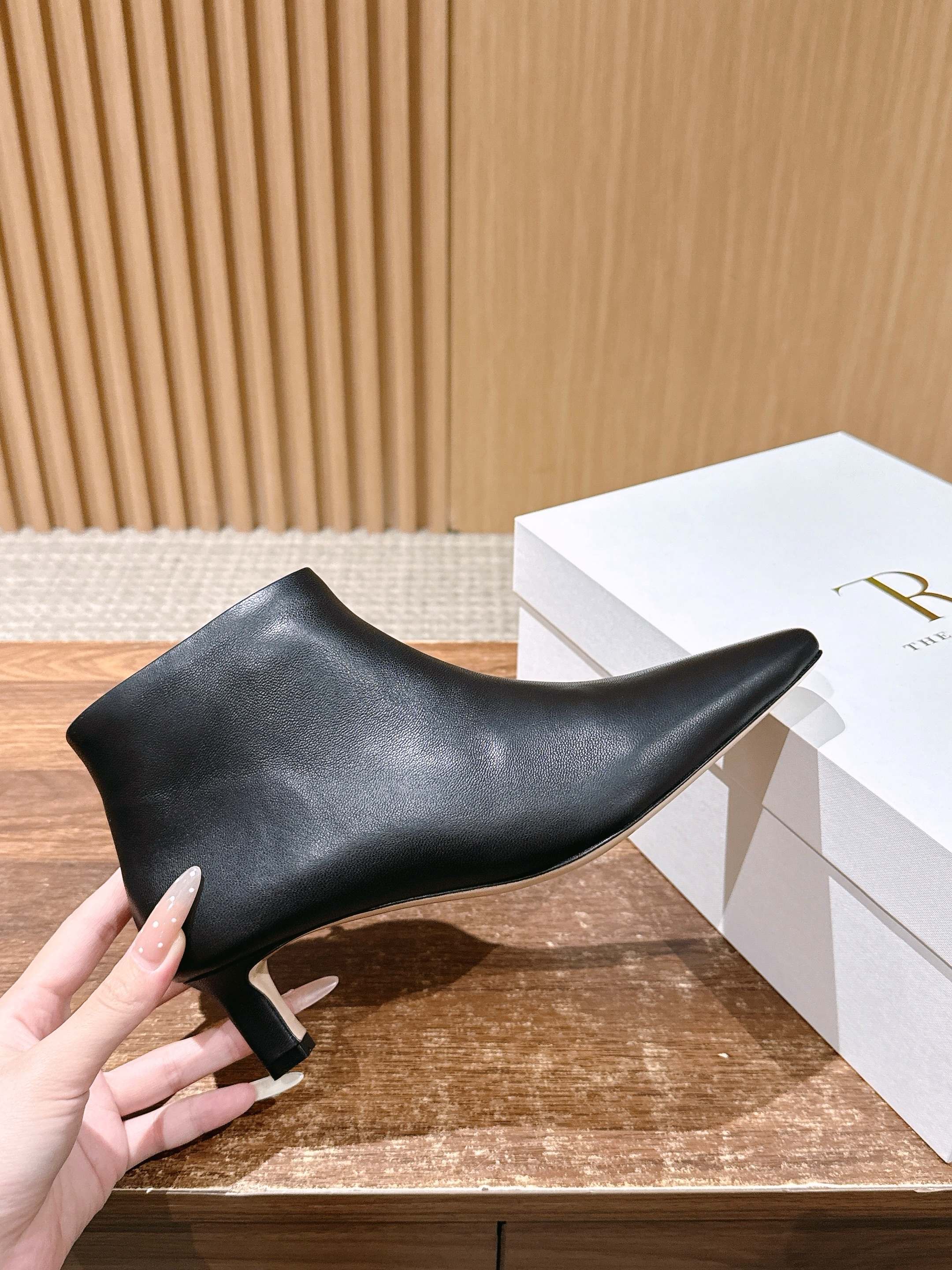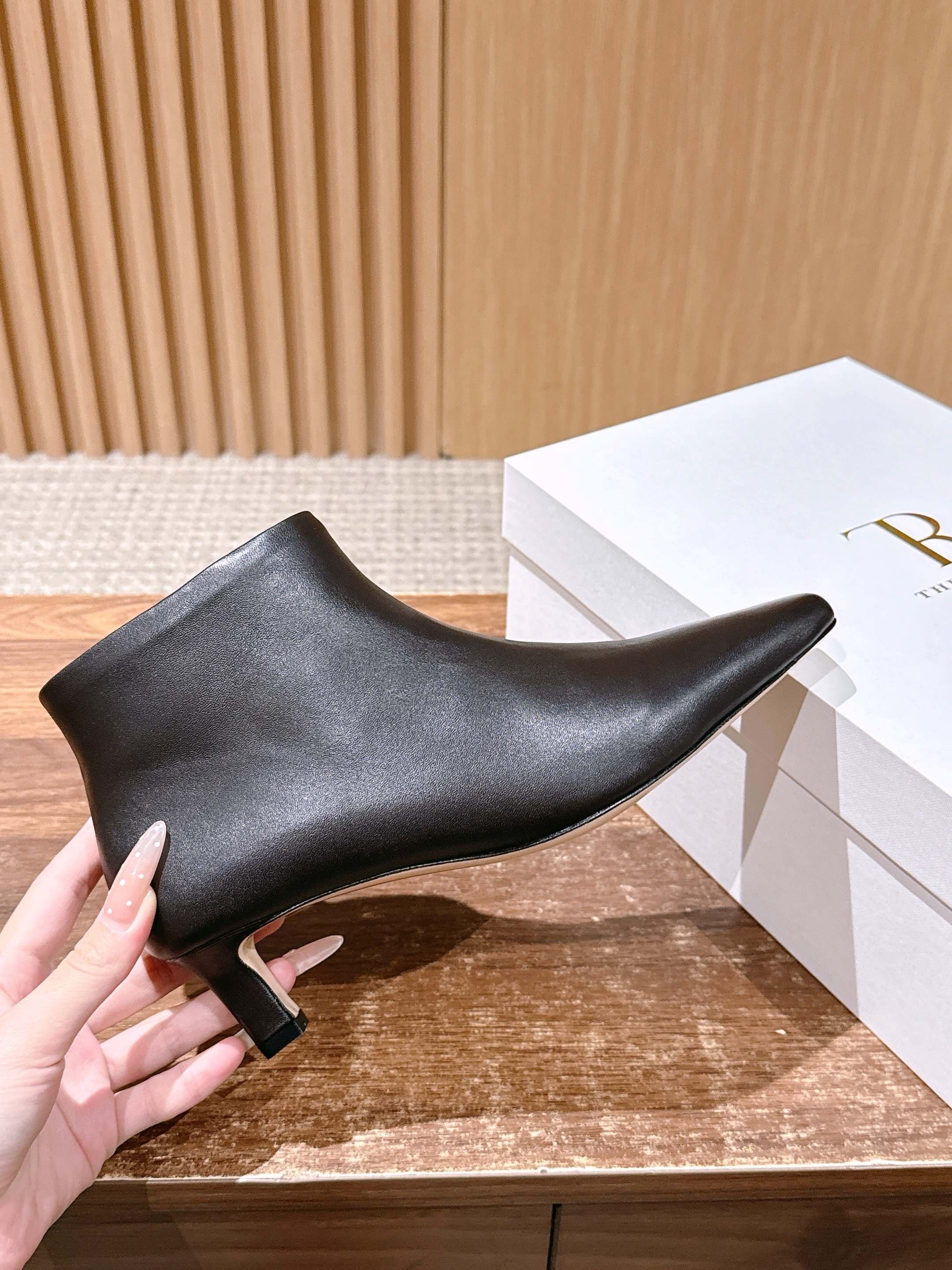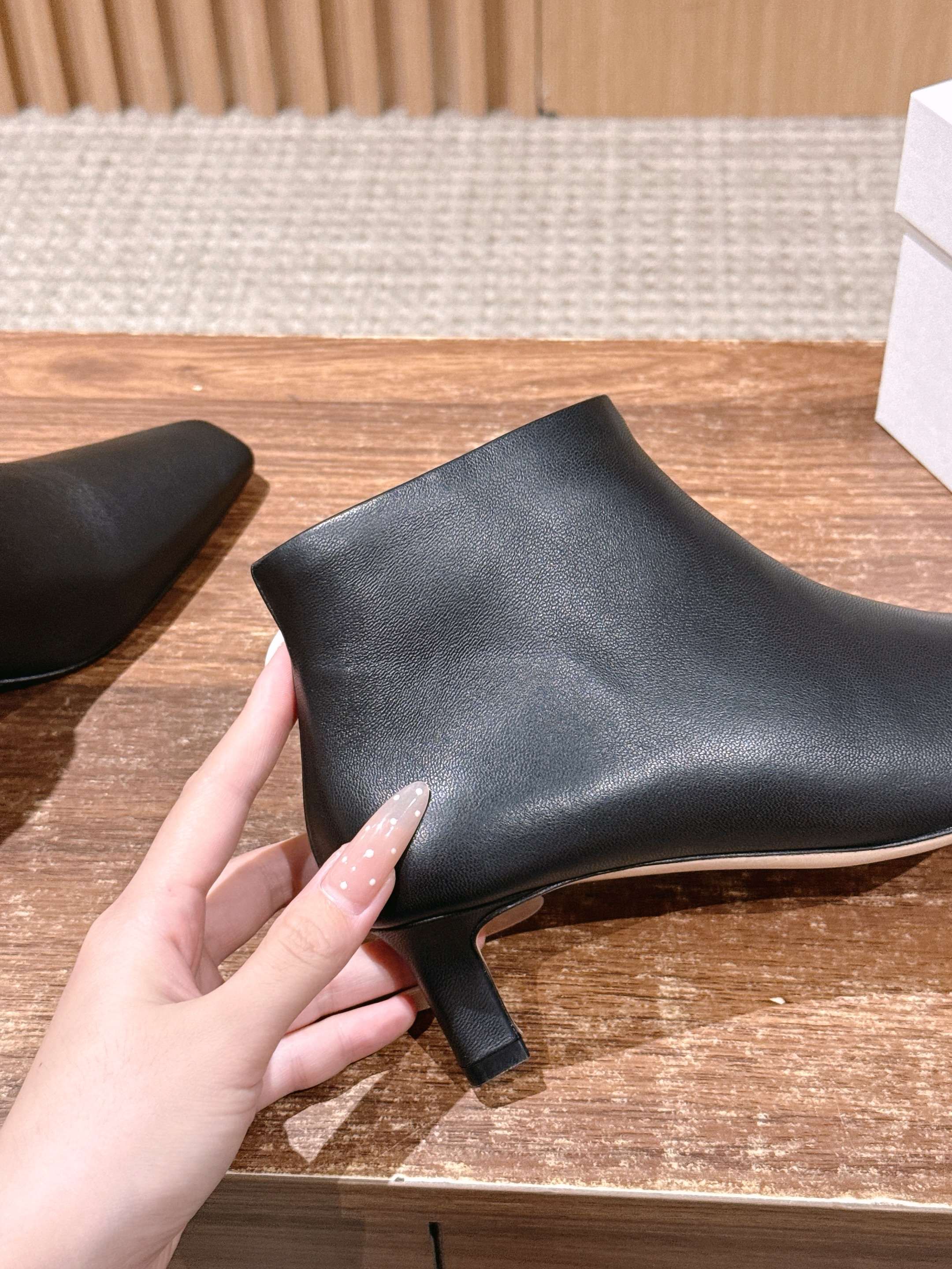 The Row 高品质猫跟侧拉链短靴 TR作为小众品牌来说是一个骄傲!完全不输众多大牌子~不仅富有设计感 还十分好穿 每一处的细节都能把脚修饰的修长得体!小猫跟上脚稳妥舒适不累,鞋头方型设计能够让趾更加舒适放松,胖瘦脚型都能轻松驾奴,并选用细腻小羊皮打造出一个触感柔软且缺不失挺括的外观~为日常搭配注入轻盈与优雅 用料也得说里外进口小羊皮,整双鞋子下来用料特别大,中皮大底整片全包底,报废利极高,保证舒适性的同时又能从图片看出皮料质感 大底:真皮大底/前掌注塑 这款靴无论是搭配优雅裙装还是休闲裤装都能打造精致的造型,非常推荐给大家! 尺码:35/36/37/38/39/40(40不退换)