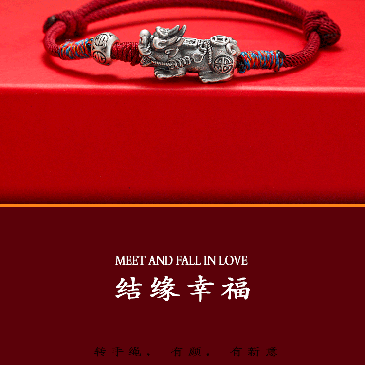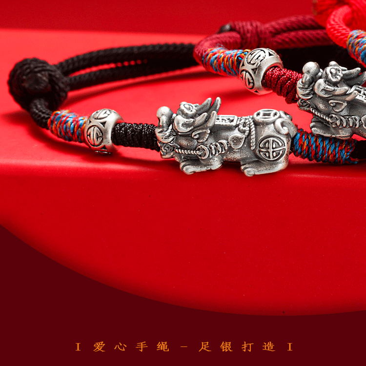 【普陀山】招财貔貅纯银手链-普陀山发货