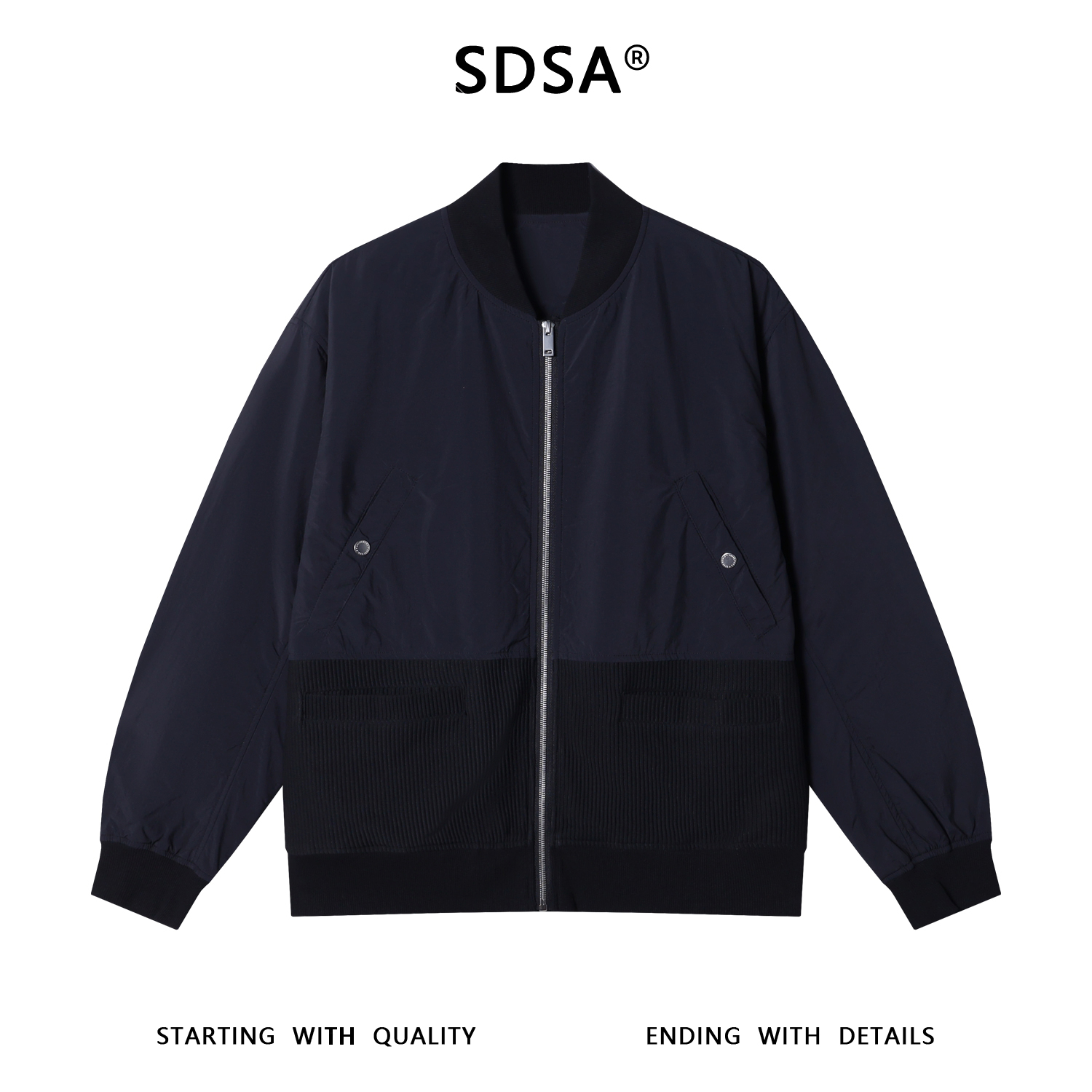 SDSA秋冬新款痞帅男装潮牌拼接棒球领拉链开衫夹克小众设计时尚