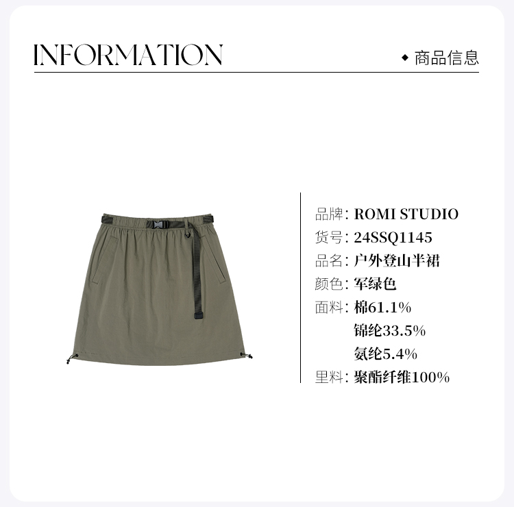ROMI STUDIO“伴行山野”高配棉调节扣腰带户外登山半裙24SSQ1145