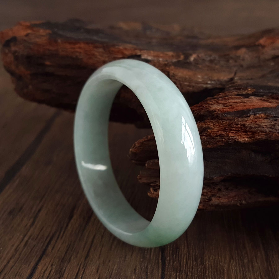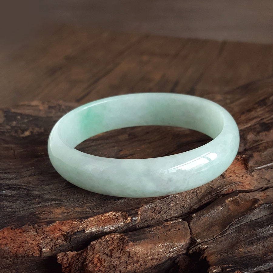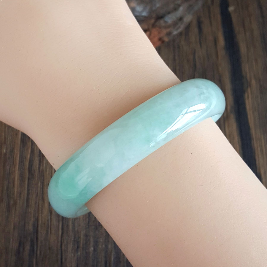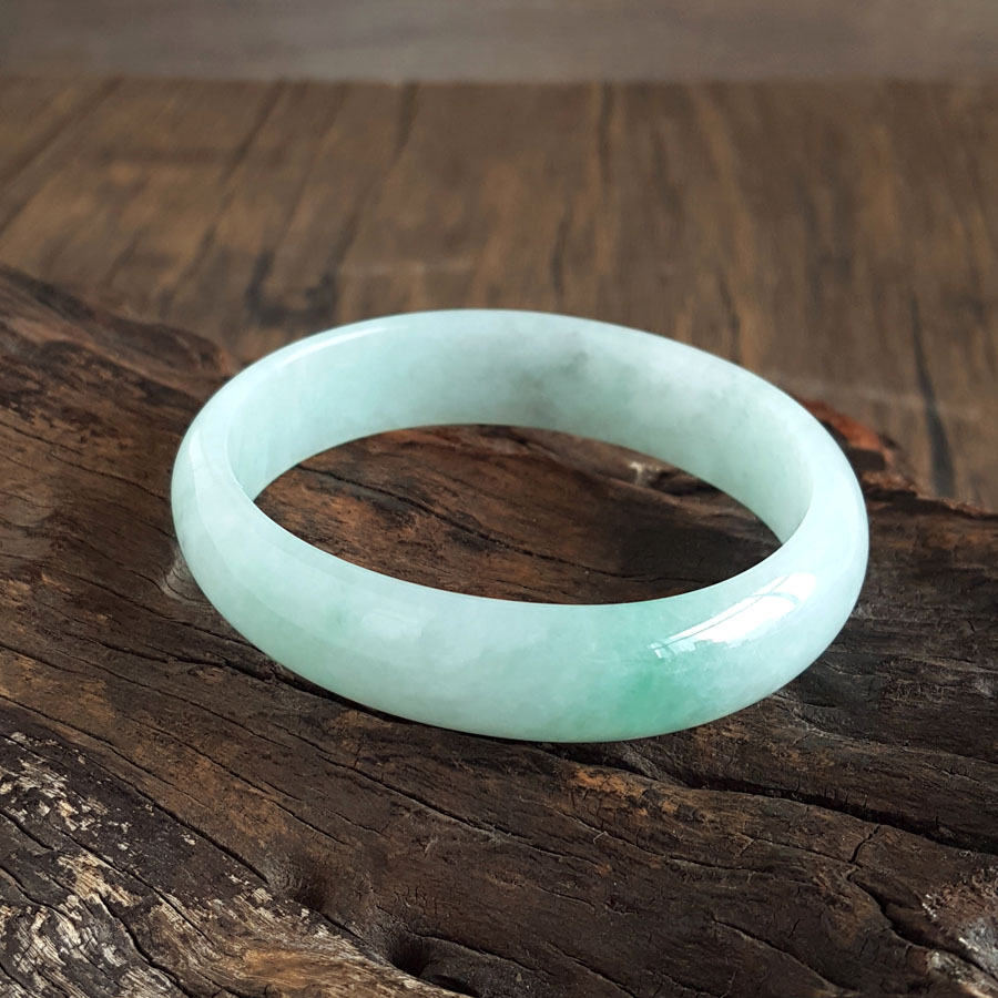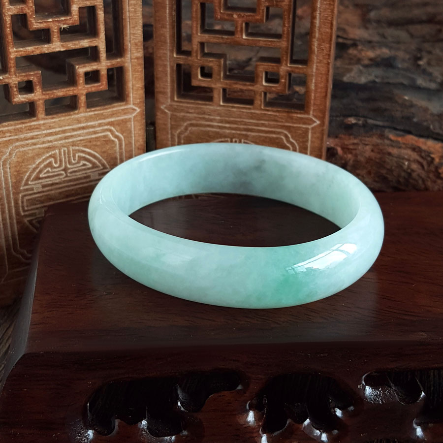 【天然正品】A货翡翠天然细腻青白含绿细豆种贵妃54号翡翠手镯女士现售价:1680!020725AH08