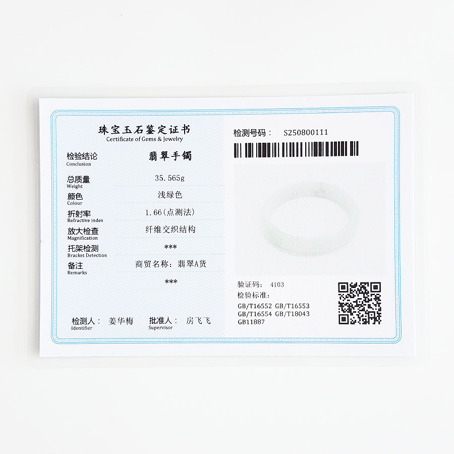 名称 | 天然细腻青白含绿细豆种贵妃54号翡翠手镯 |