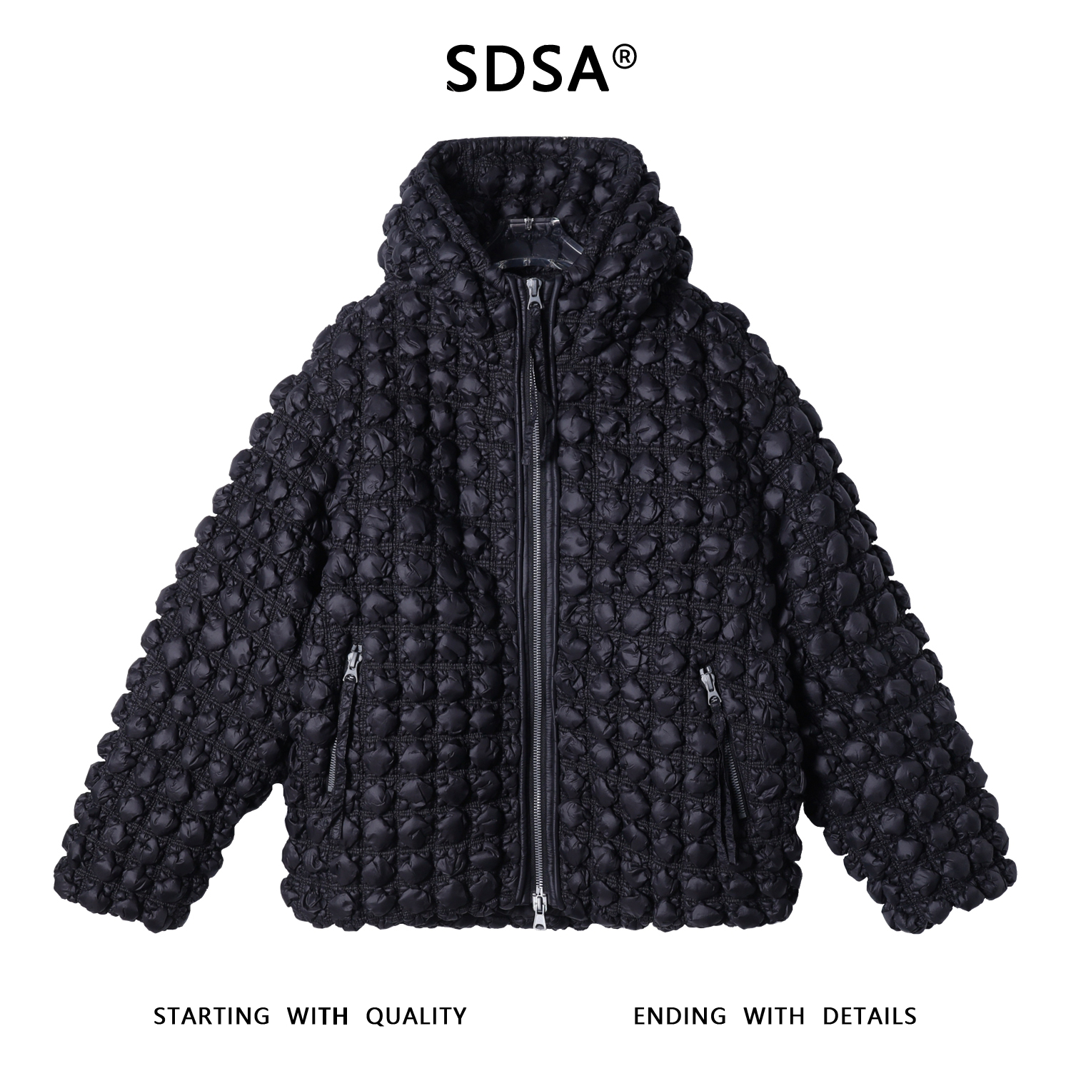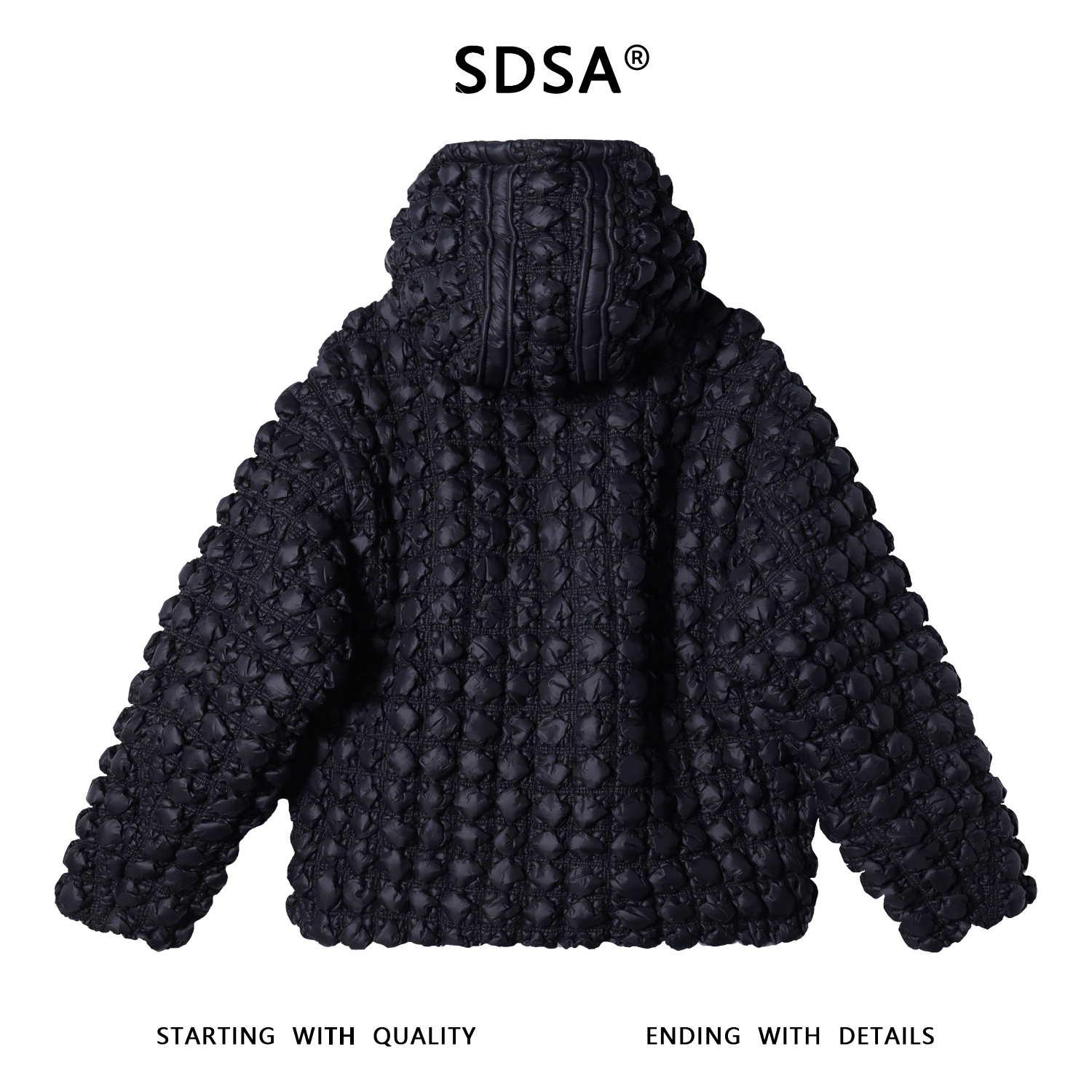 23835SDSA男士秋冬新款痞帅男装老钱风纯色格纹拉链连帽白鹅绒服外套
