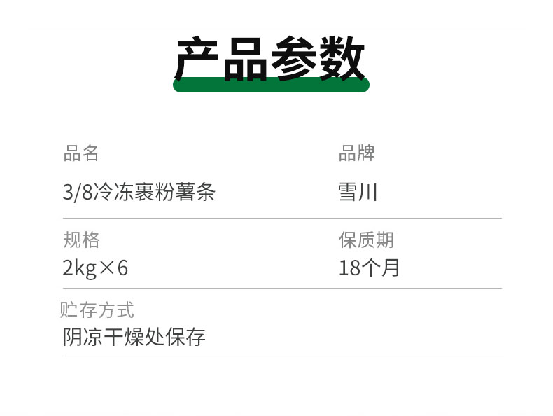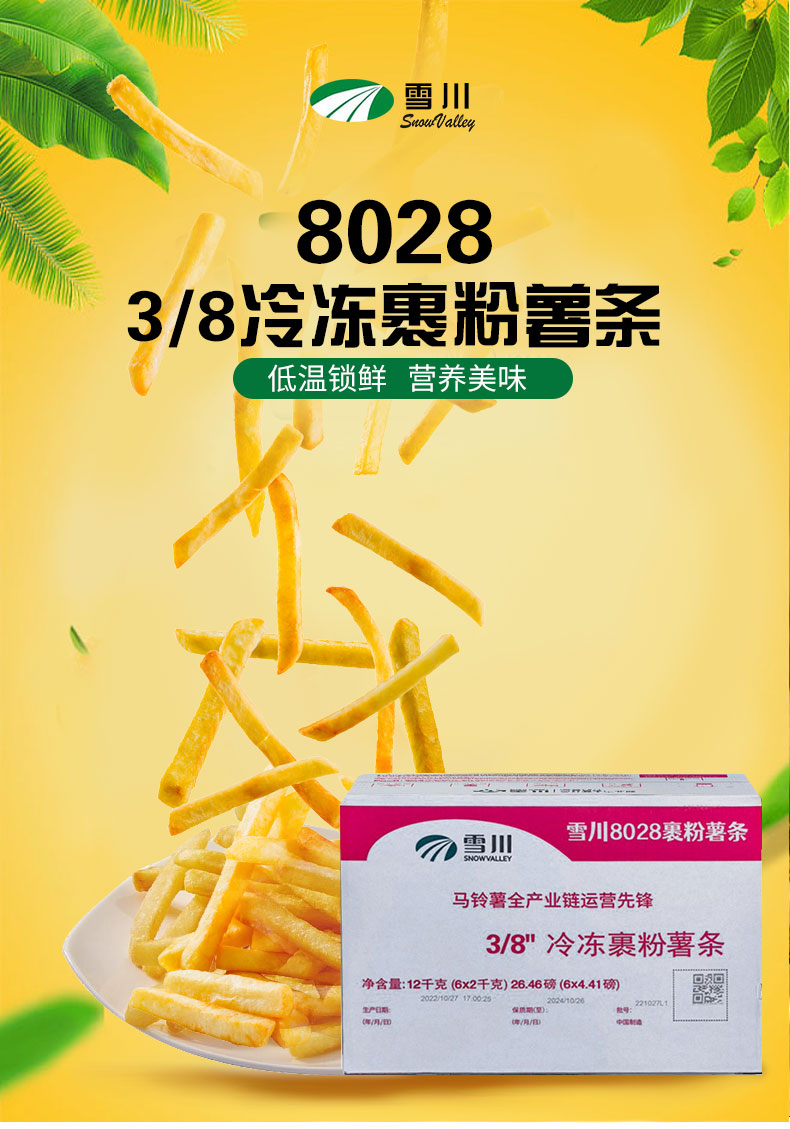 雪川8028裹粉薯条3/8冷冻裹粉薯条2kg*6【406】