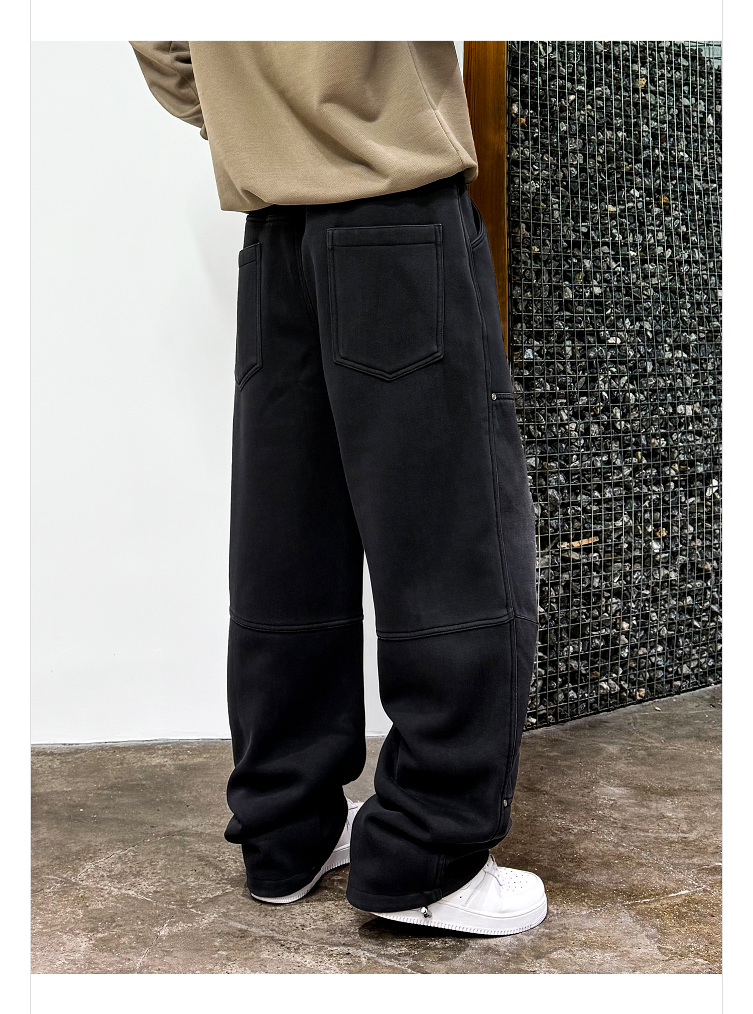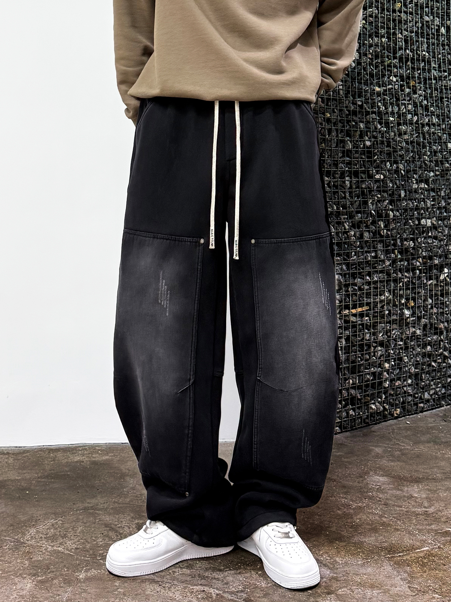 徐太浪【做旧刮烂 帅气贴布】加绒卫裤男秋冬款宽松直筒裤子长裤