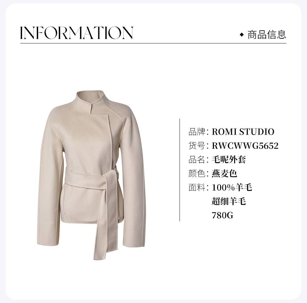 ROMI STUDIO“国王的礼物”美丽诺绵羊毛 短款双面呢大衣RWCWWG5652