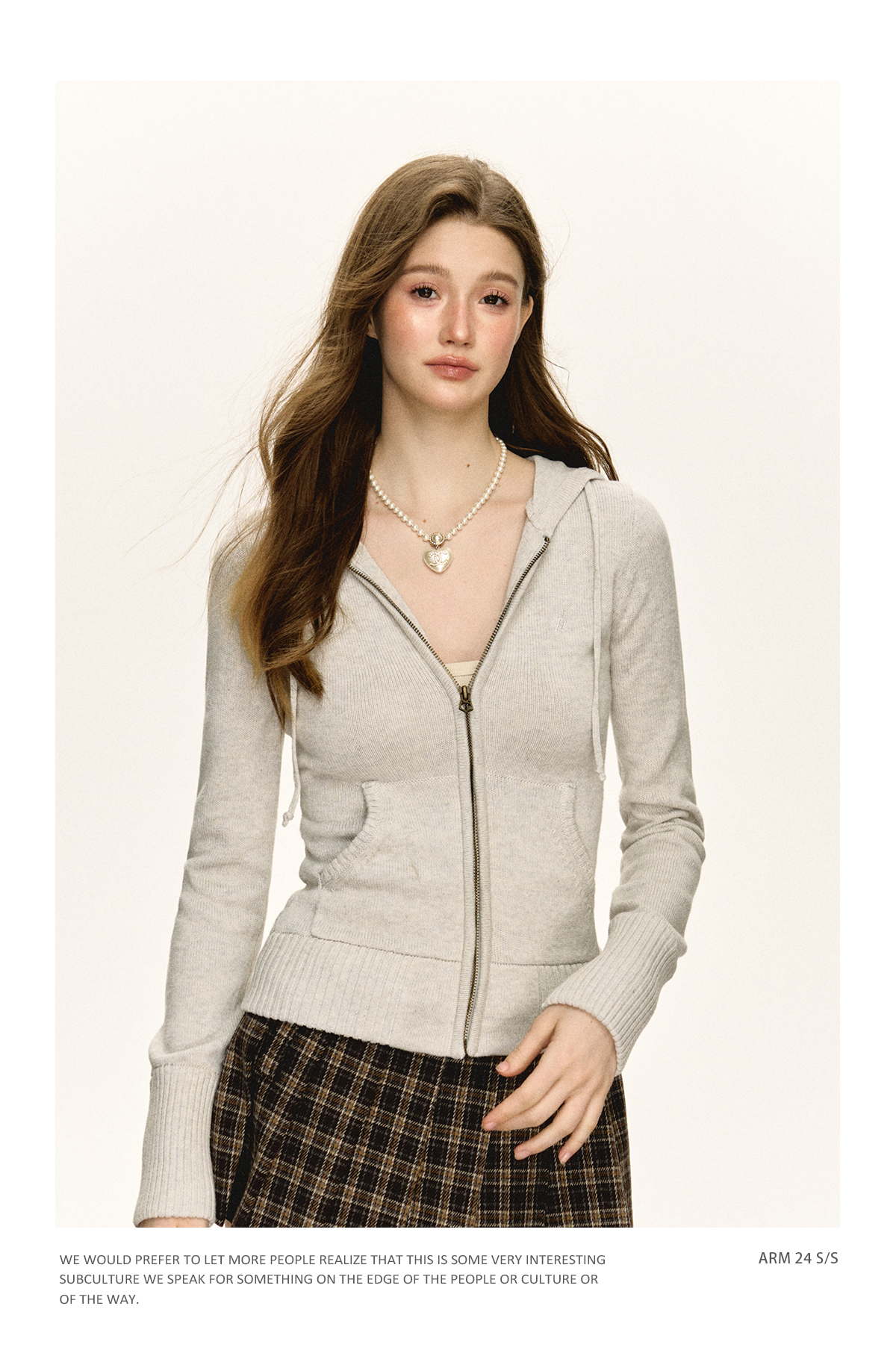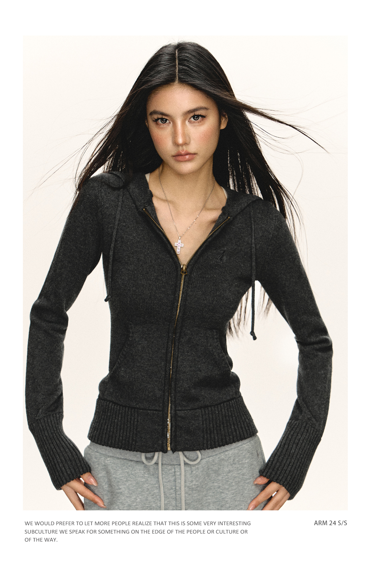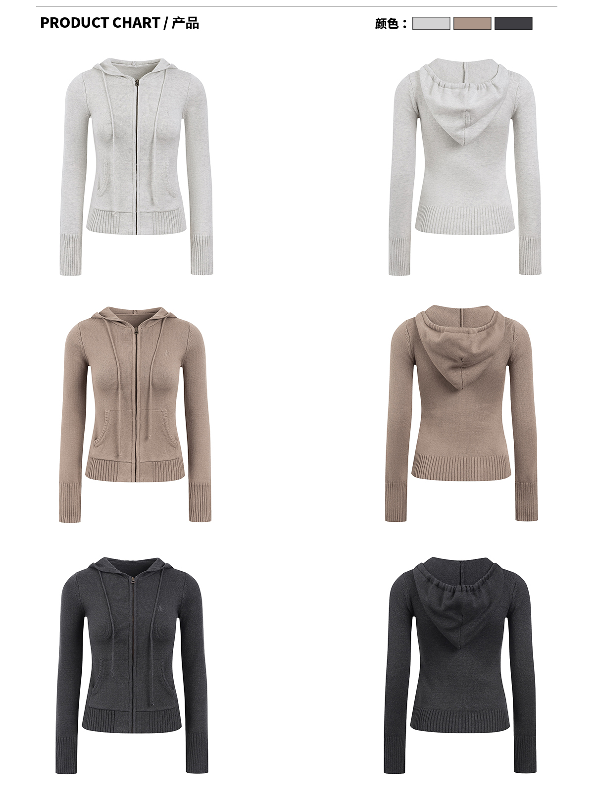 Ariseism 美式复古修身连帽拉链开衫毛衣女春秋新款上衣