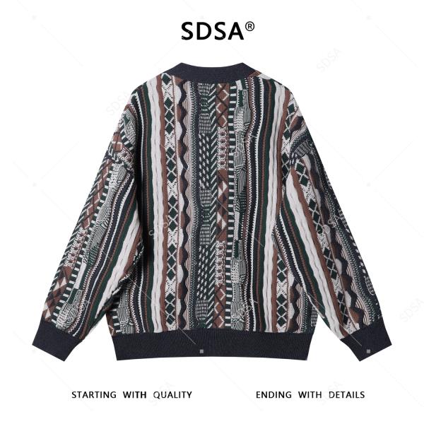 257121SDSA秋冬新款痞帅男装韩版撞色竖纹纽扣V领针织衫百搭开衫毛衣