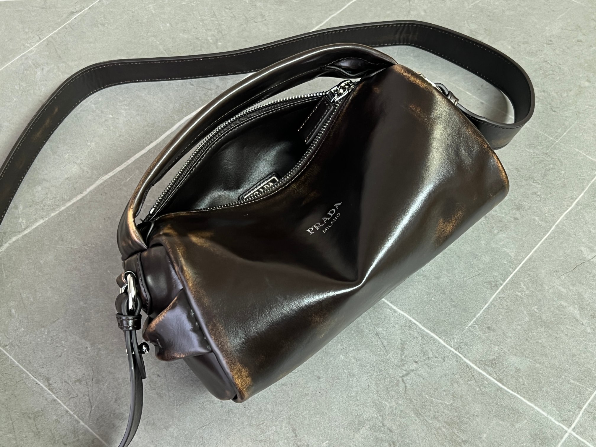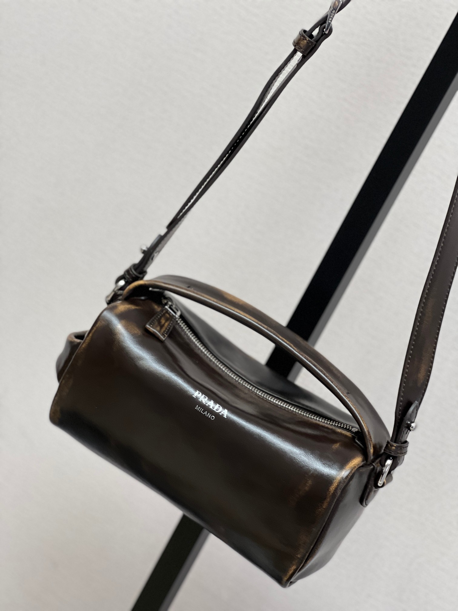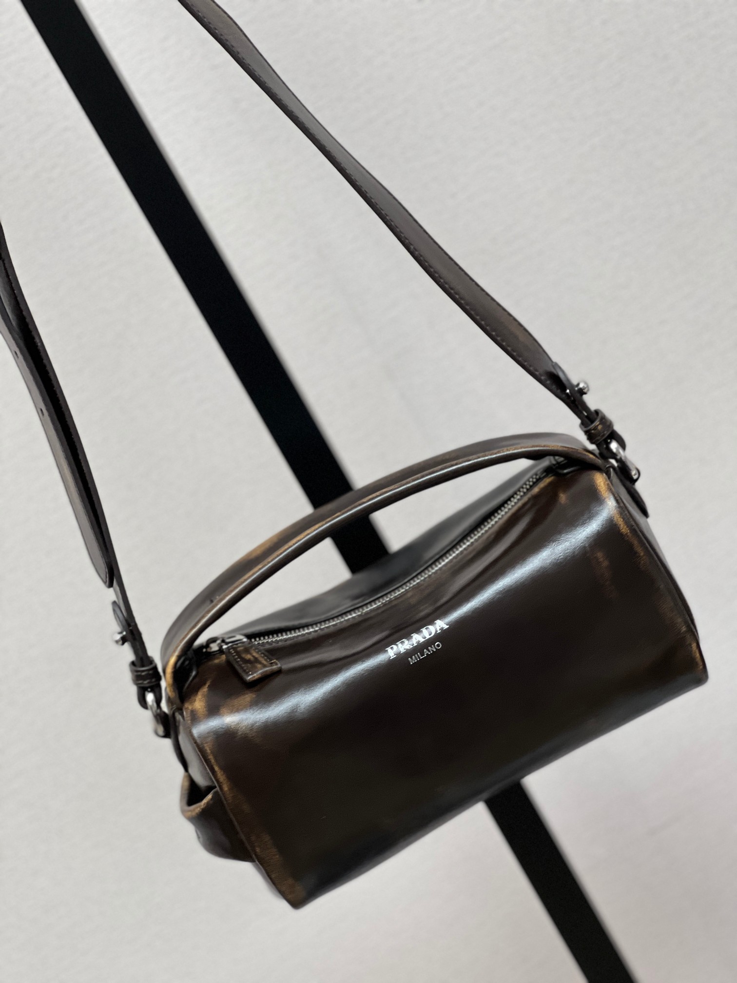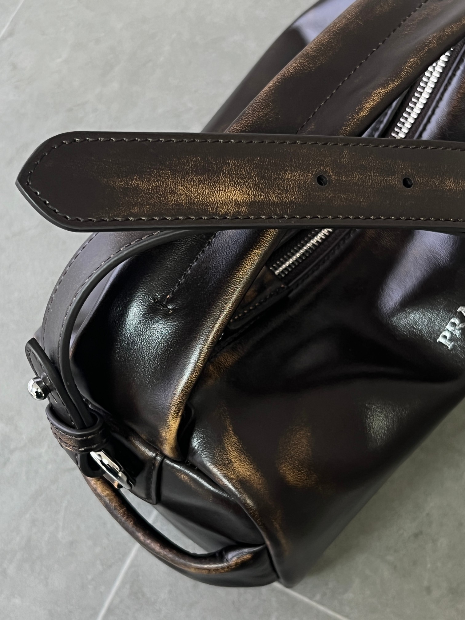 P 家 25秀款旧油蜡皮饭盒包!男女同款 纯原渠道货来的,这质感无法抗拒,这只“旧包” 爱了爱了~巧克力色复古做旧小包,复古与未来的双重视觉碰撞!