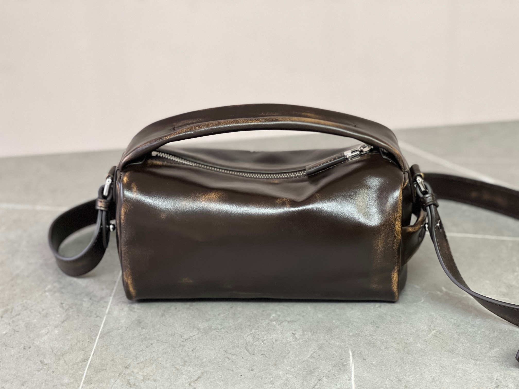 纯手工复古做旧擦色处理,每一只包的效果都是独一无二的~